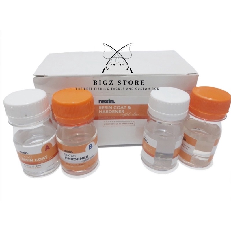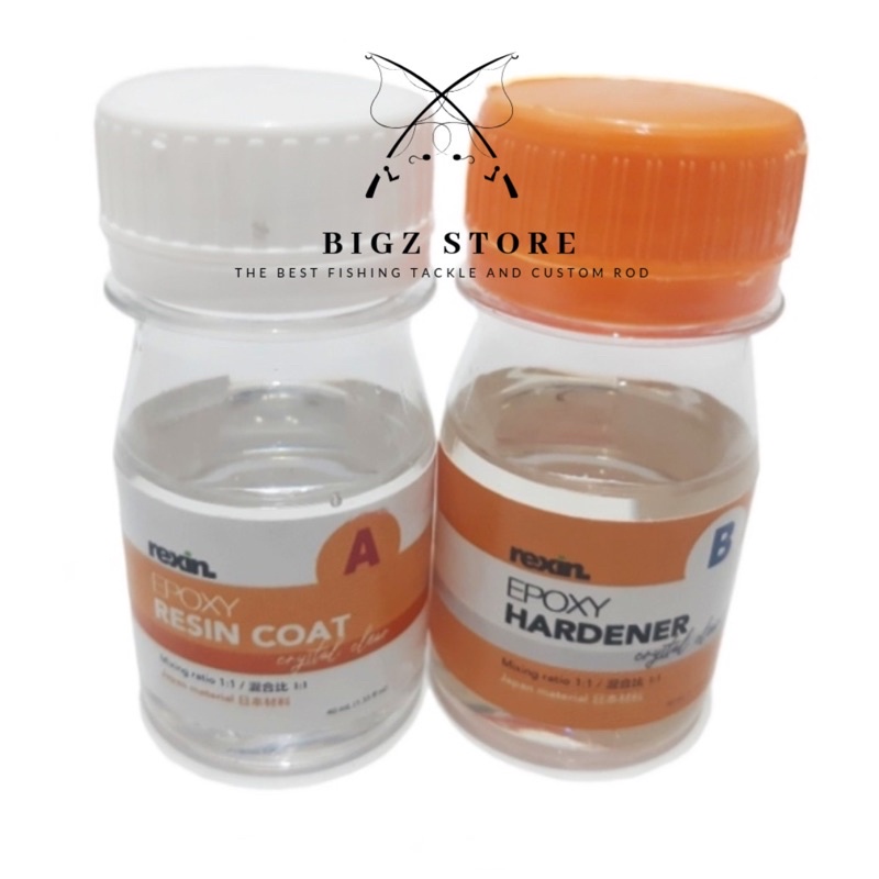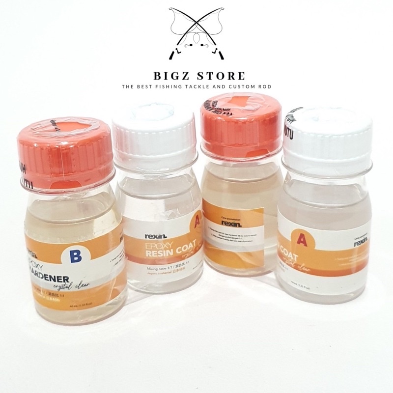 RESIN DAN HARDENER MERK REXIN 80 ML (40 RESIN + 40 EPOXY) SANGAT JERNIH CRISTAL CLEAR FINISH COCOK UNTUK FINISHING RING GUIDE, MAMARIT, KOLONGAN, BENANG JORAN NON LYCAN, NON BOJA, NON FLEX COAT
