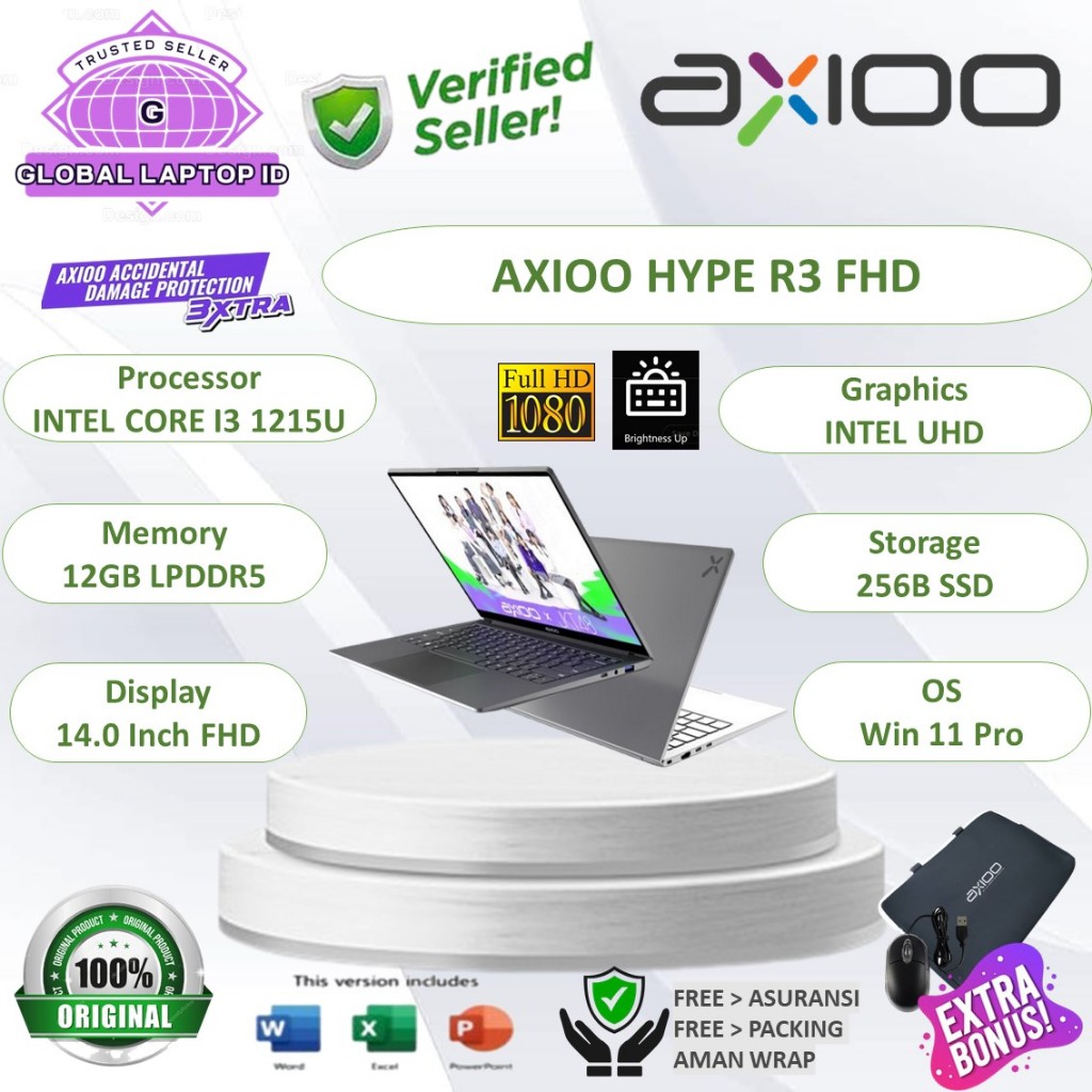 RESMI Laptop AXIOO Hype R3 OLED Intel i3 1215U RAM 24GB 256GB SSD 14" FHD OLED Backlite Windows 11 Pro ADP Original