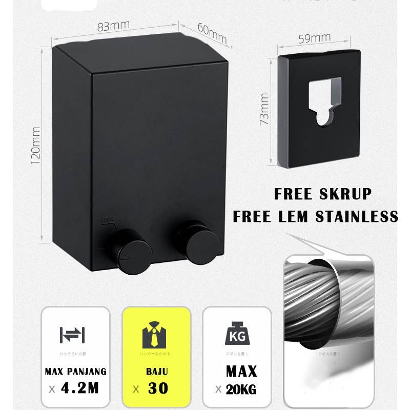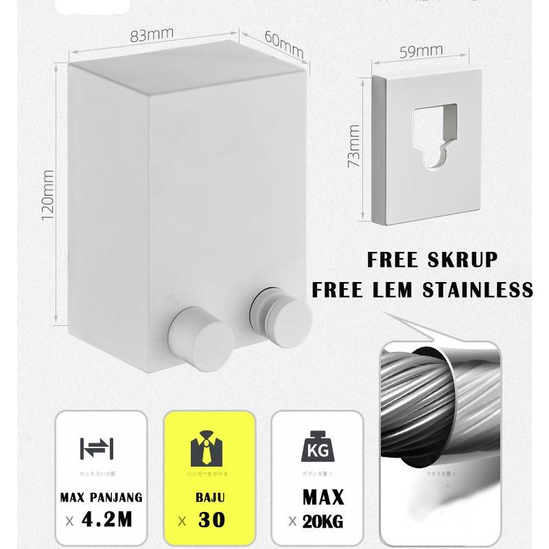 RETRACTABLE CLOTHESLINE/JEMURAN BAJU PORTABLE INDOOR OUTDOOR/ JEMURAN TALI RETRACTABLE/JEMURAN BAJU RETRACTABLE