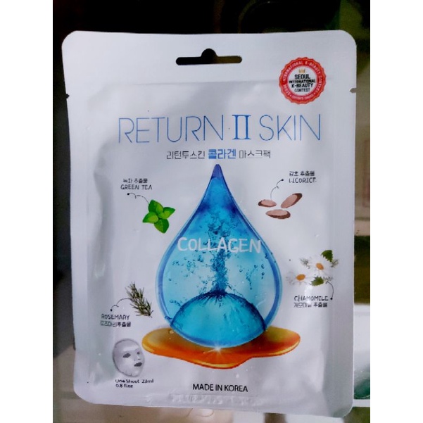 RETURN II SKIN MASK KOREA - MASKER WAJAH (ALOE VERA, POMEGRANATE, COLLAGEN)