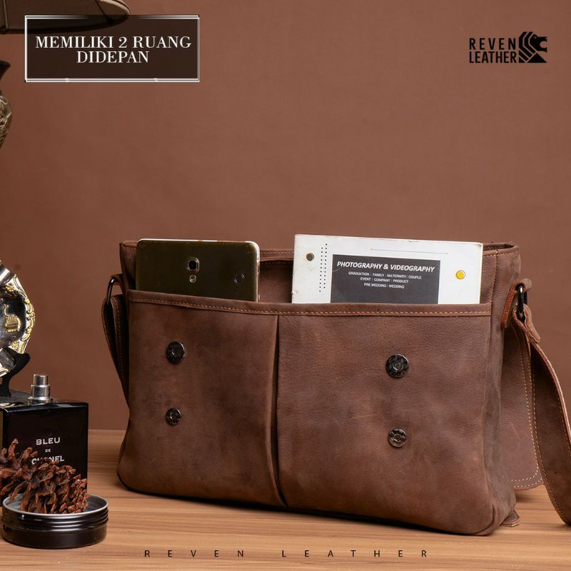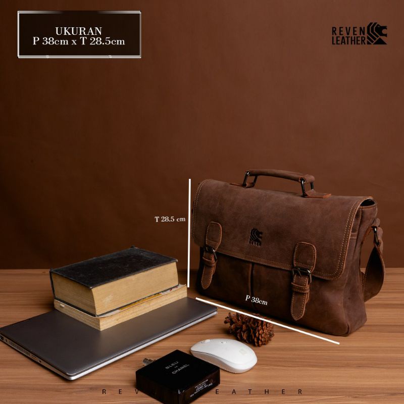 REVEN LEATHER - Tas Laptop Kulit pria / Tas kerja Pria /Tas kantor Kulit asli - Laptop