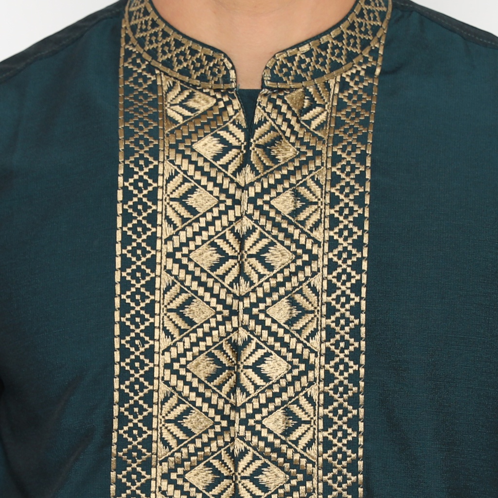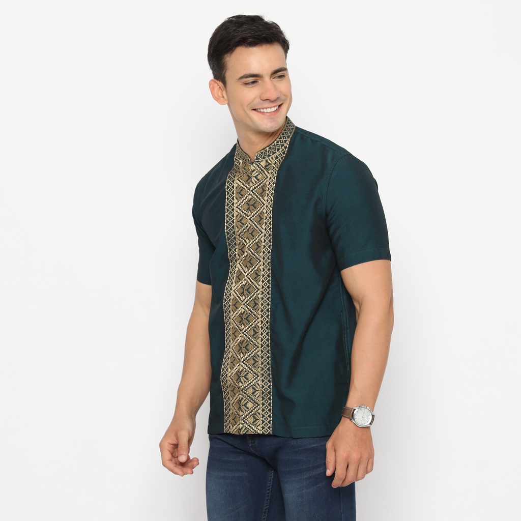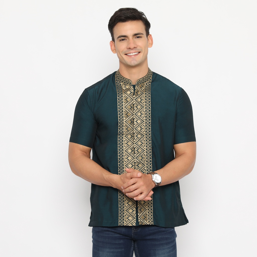 RICARDO Baju Koko Bordir Hijau Polyester Lengan Pendek 32211