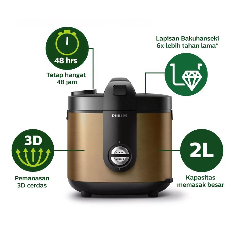 RICE COOKER PHILIPS STAINLESS STEEL 2 LITER - MAGIC COM PHILIPS 2 LITER