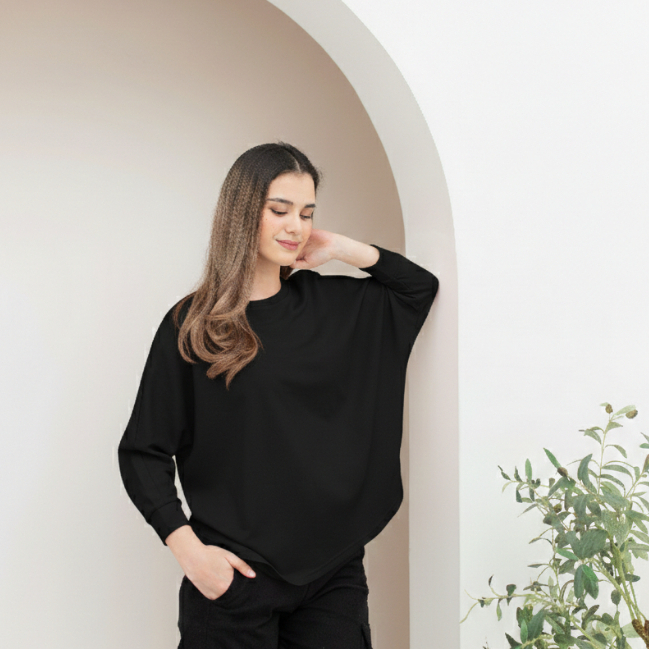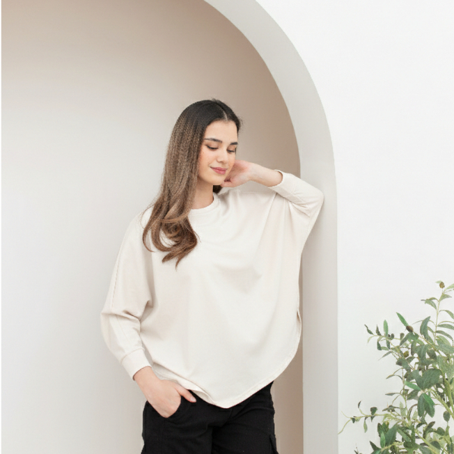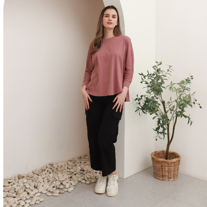RILLEY - Kaos Polos Alika | Kaos Polos Wanita Batwing| Baju Lengan Panjang Cewek Perempuan Wanita