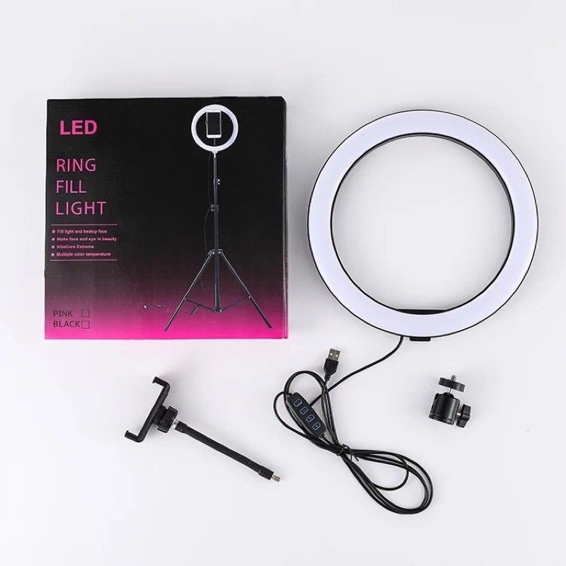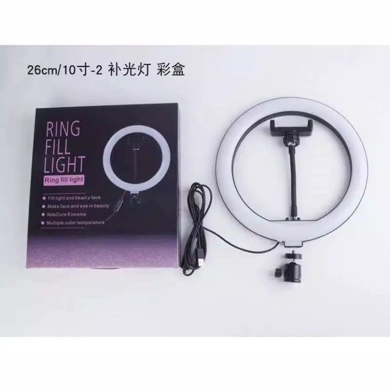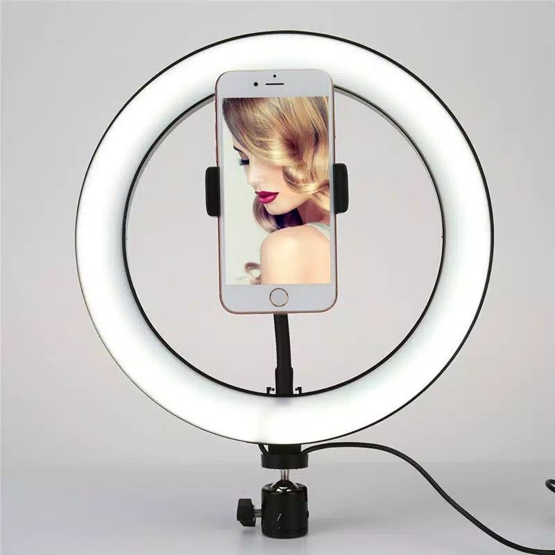 RINGLIGHT LAMPU RING LED UKURAN LINGKARAN 26 CM DENGAN 3 WARNA LAMPU 3 TINGKAT KECERAHAN LAMPU