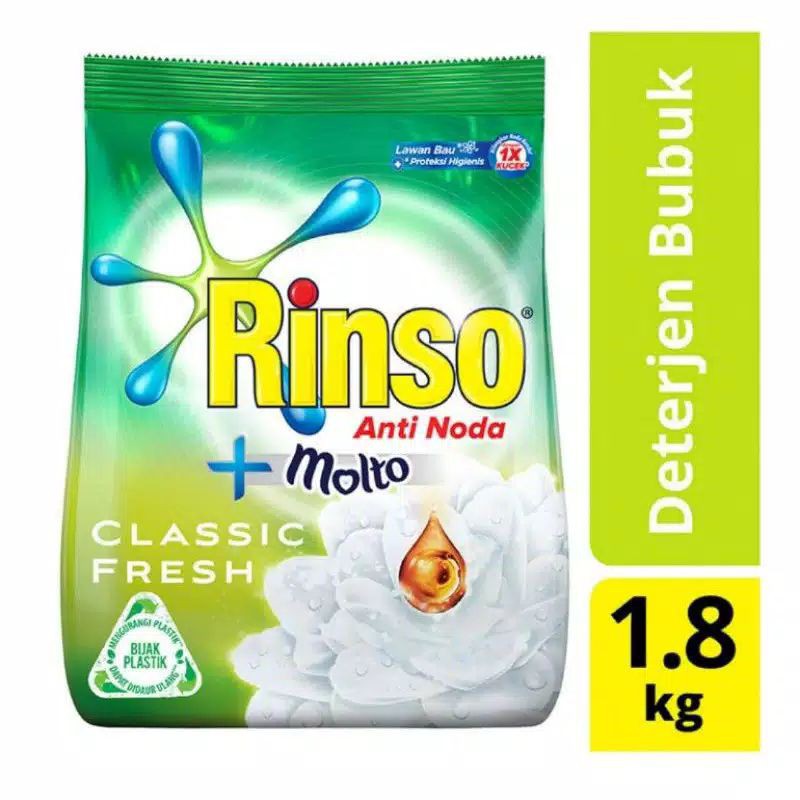 RINSO DETERGENT BUBUK BESAR 1.8 KG 1800 GRAM 2 KG ANTI NODA+MOLTO SABUN CUCI BAJU