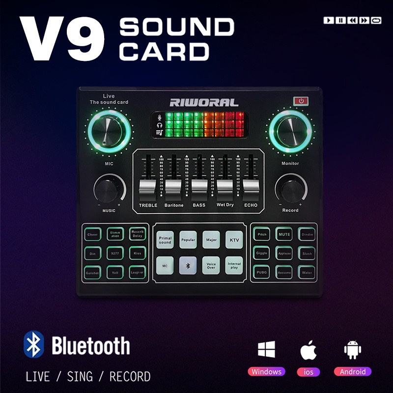 RIWORAL Soundcard V9 Bluetooth Audio USB External Sound card Live Adapter V9