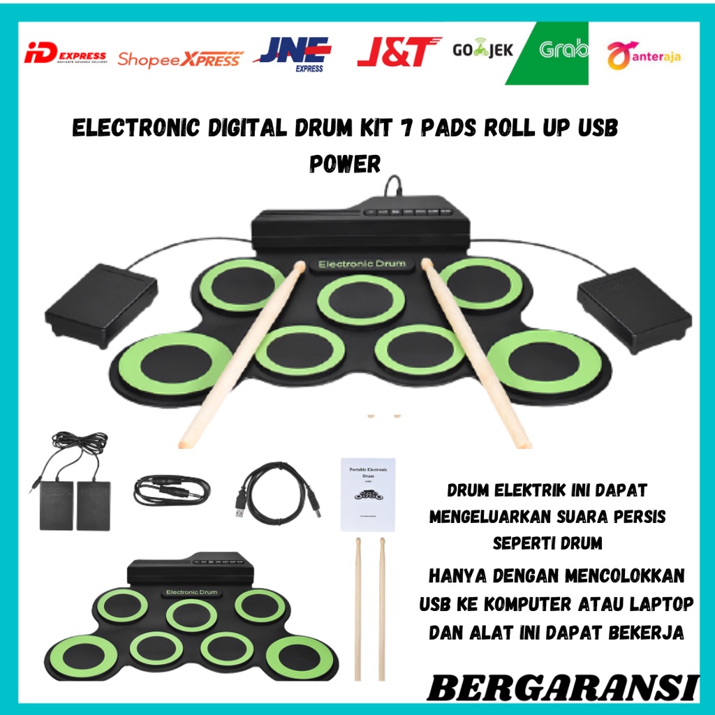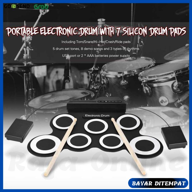 RJ Drum Elektrik Drum Electric Electronic Digital Drum Kit 7 Pads Roll Up USB Power Bisa Digulung