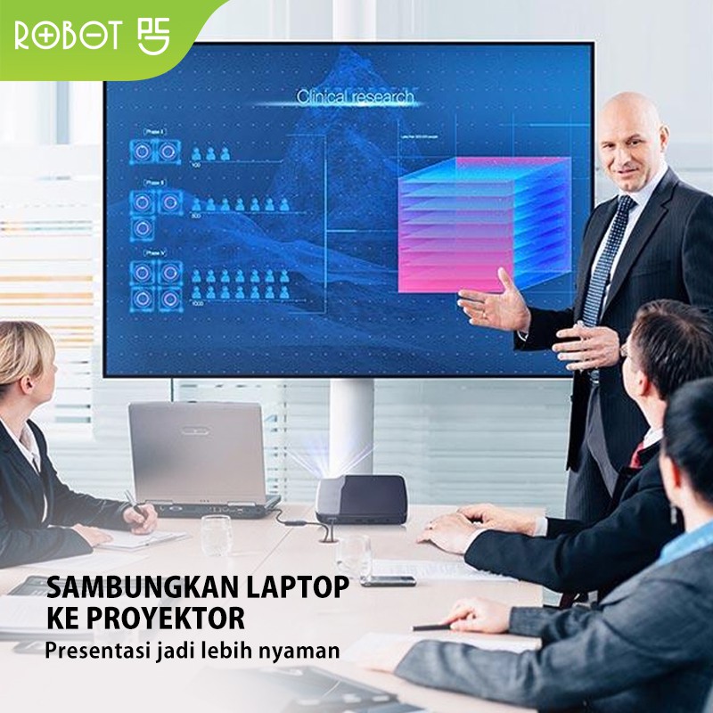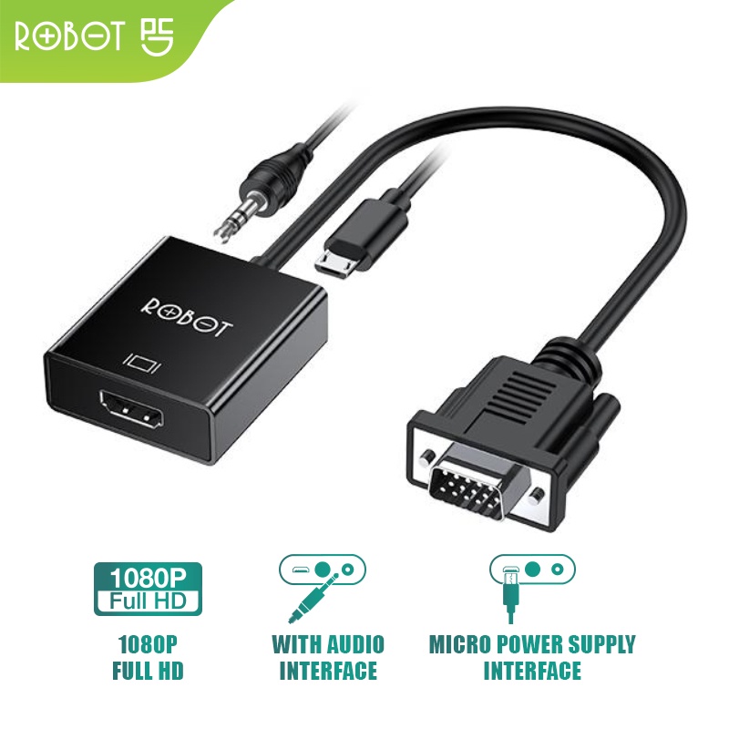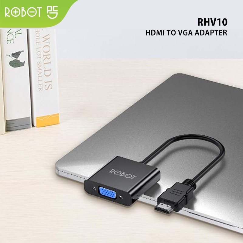 ROBOT Adapter Konektor HDMI TO VGA Kualitas Resolusi HD Resolusi 1080P Jernih Adapter Laptop Ke Proyektor Black Original - RHV10