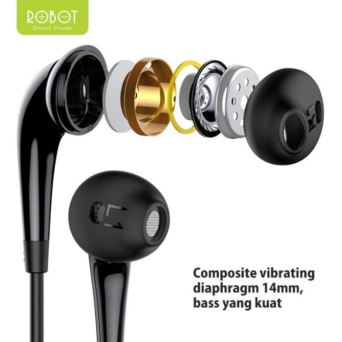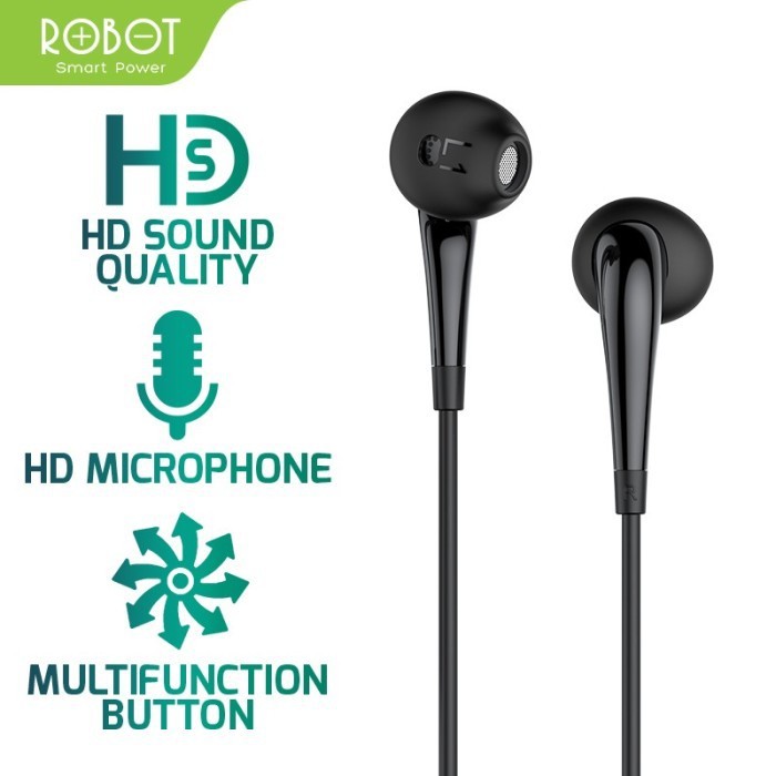 ROBOT Earphone/Headset Android/iPhone Garansi Resmi 1 Tahun - RE701 Warna Hitam