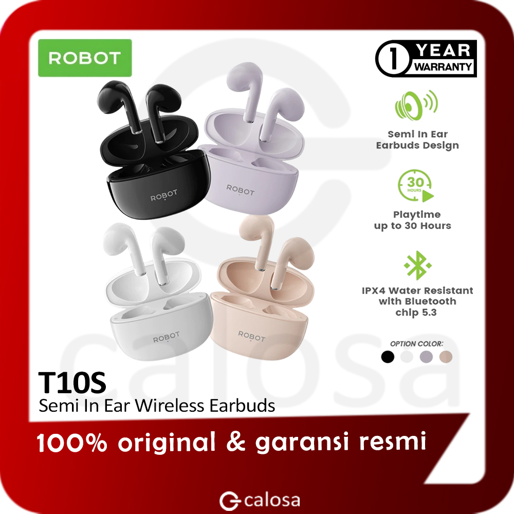 ROBOT Headset TWS Flybuds T10S Wireless Headset Bluetooth 5.3 Earphone Waterproof IPX4 Semi In Ear