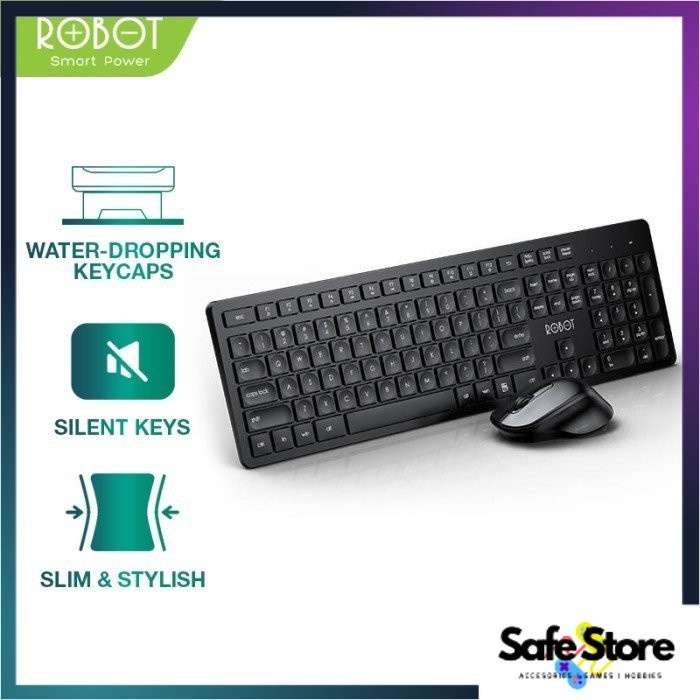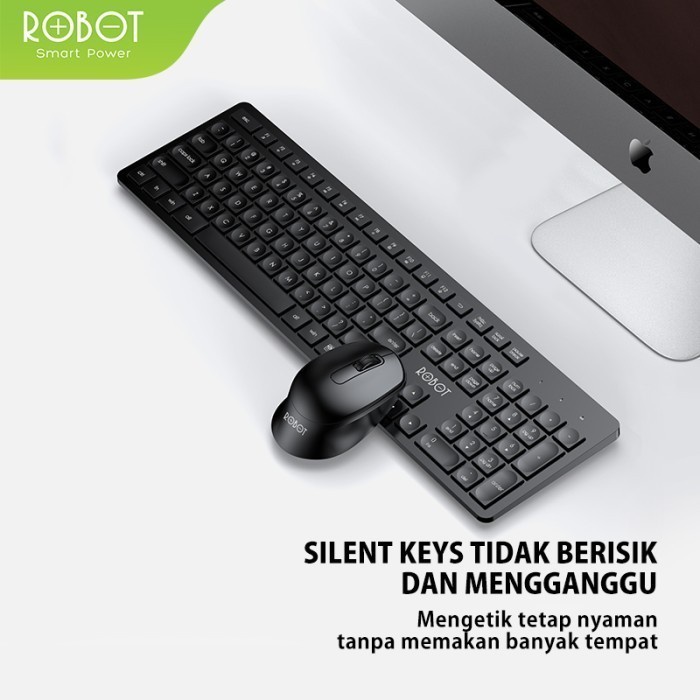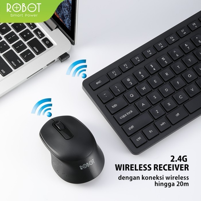 ROBOT KM3100 KM3500 KM4000 Combo Set Optical Mouse & Keyboard Wireless 2.4G - Hitam Original Garansi 1 Tahun