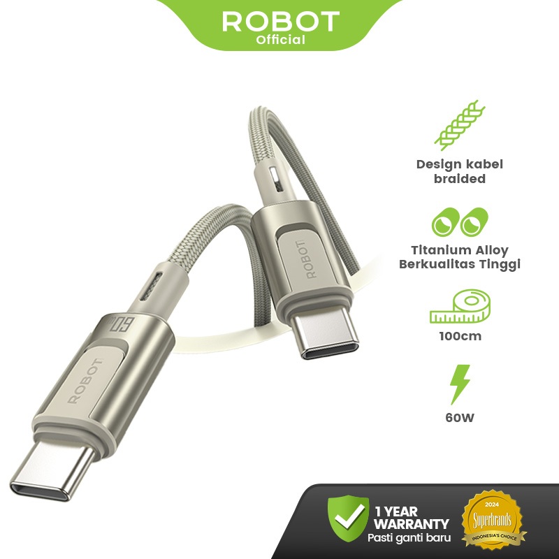 ROBOT Kabel Data Fast Charging Type C Lightning 1M Data Cable Braided Black/Gold Original RZC100/RZL100/RZCC100/RZCL100 - Garansi 1 Tahun
