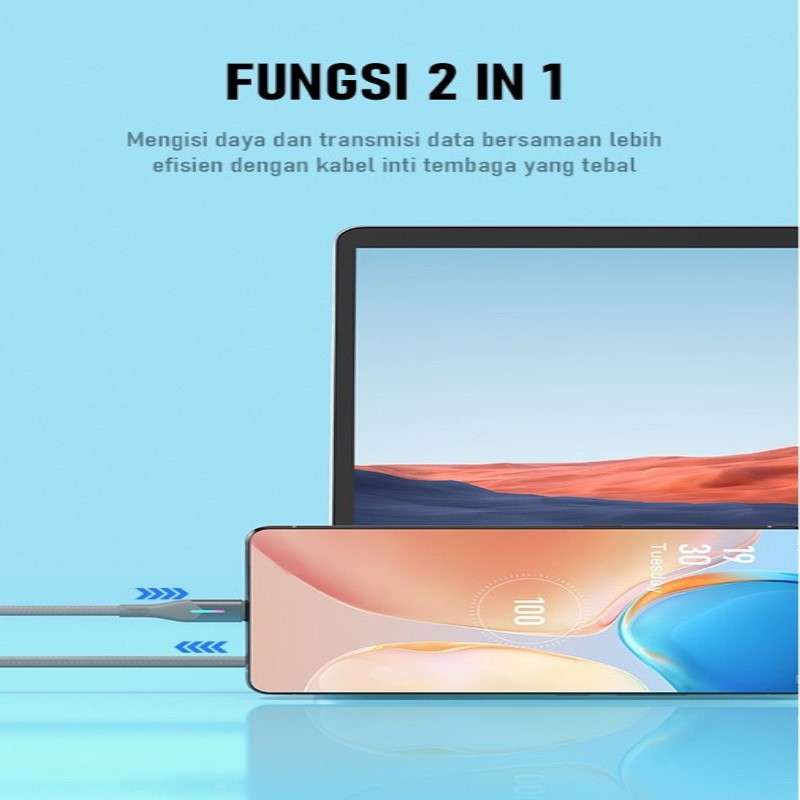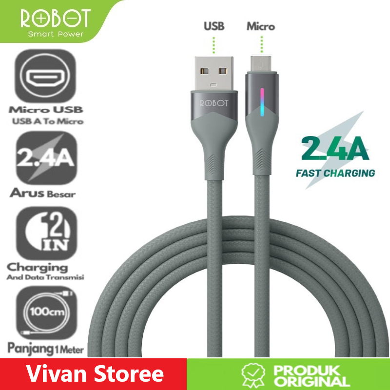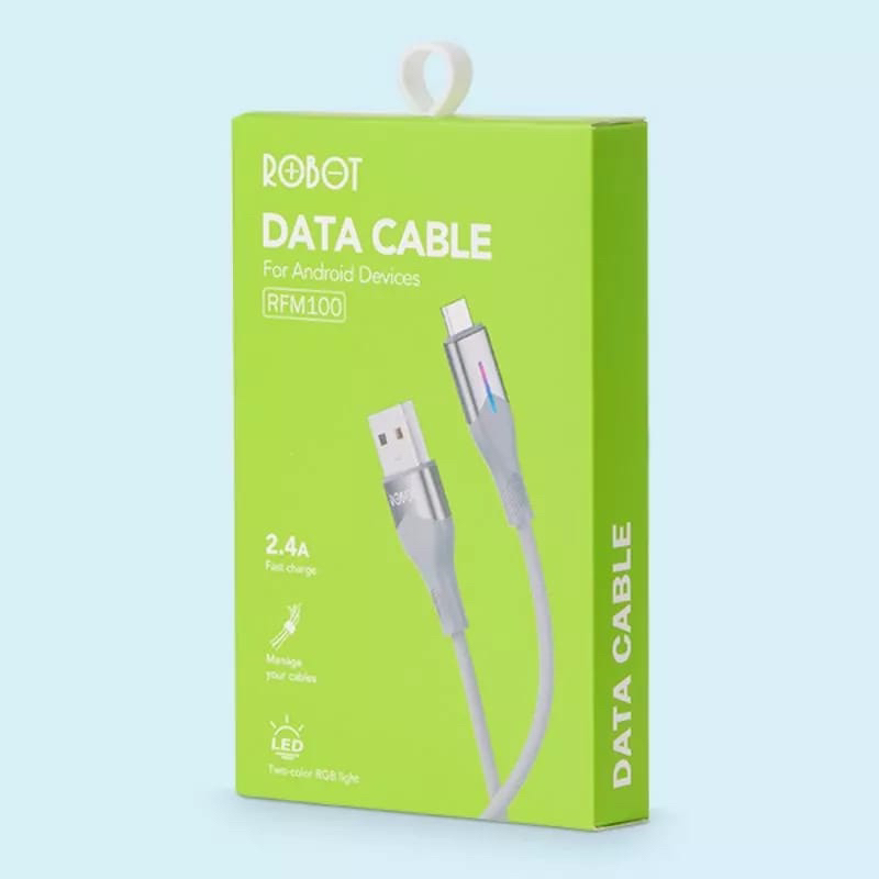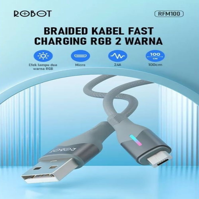 ROBOT Kabel Data RFM100 Data Cable Android Micro USB 2.4A 100cm Braided Colorful Garansi Original Resmi