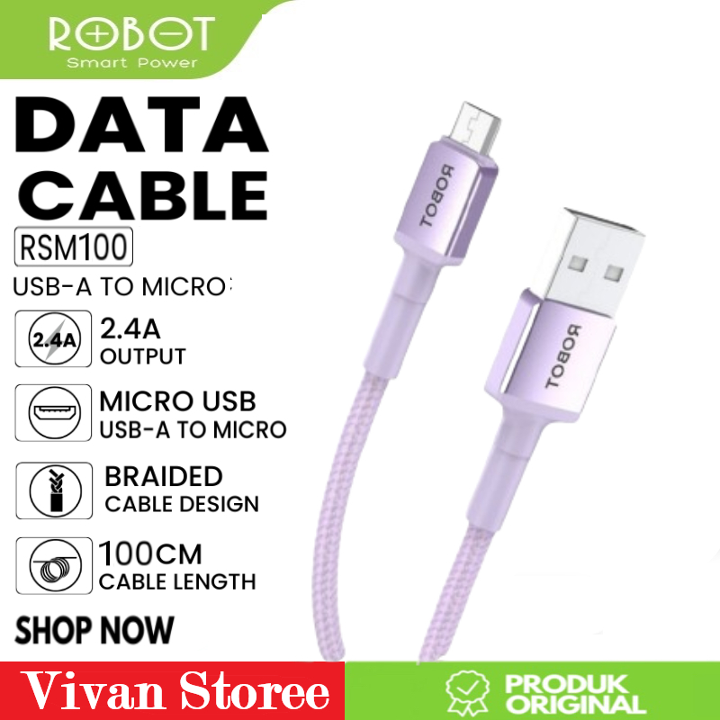 ROBOT Kabel Data RSM Data Cable 2,4A Android Micro USB 100CM / 200CCM Colorful Garansi Original Resmi