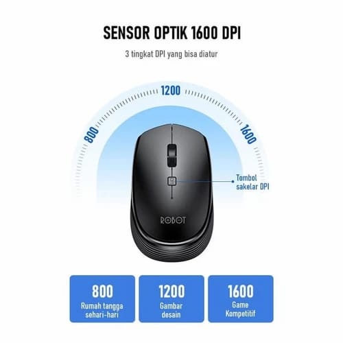 ROBOT M200/M205 MOUSE WIRELESS 2.4GHz Silent Optical 1600DPI Mouse Murah