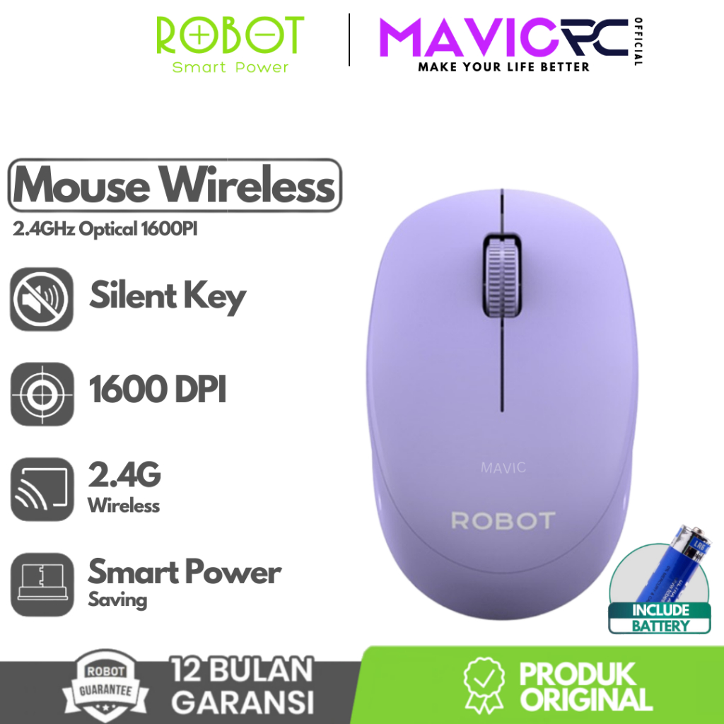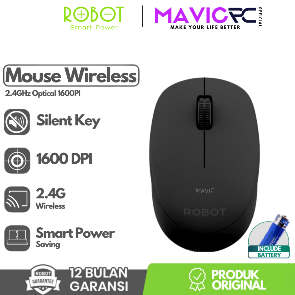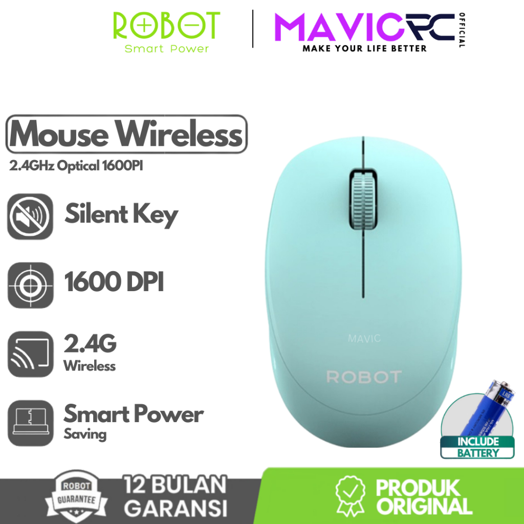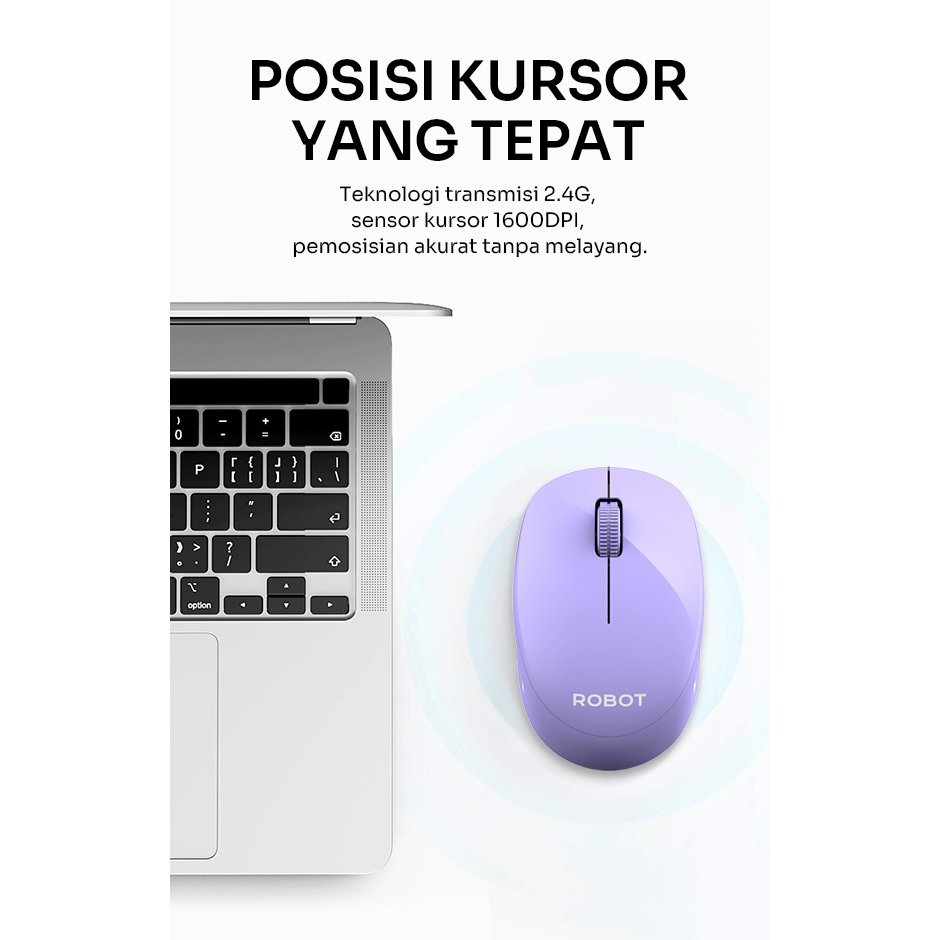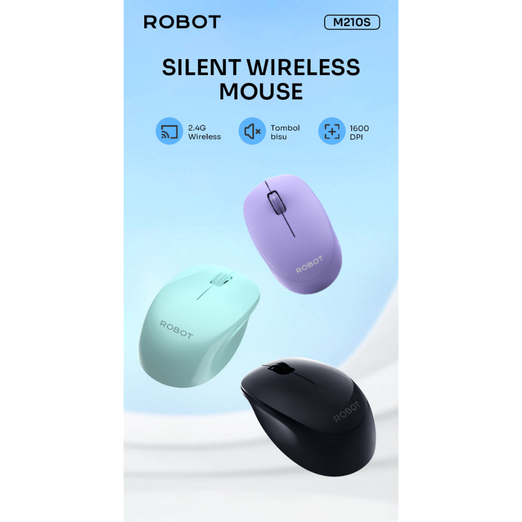 ROBOT M210S Mouse Wireless Optical Silent Click Ergonomis Design 2.4G 1600DPI For PC Laptop - Garansi Resmi 1 Tahun