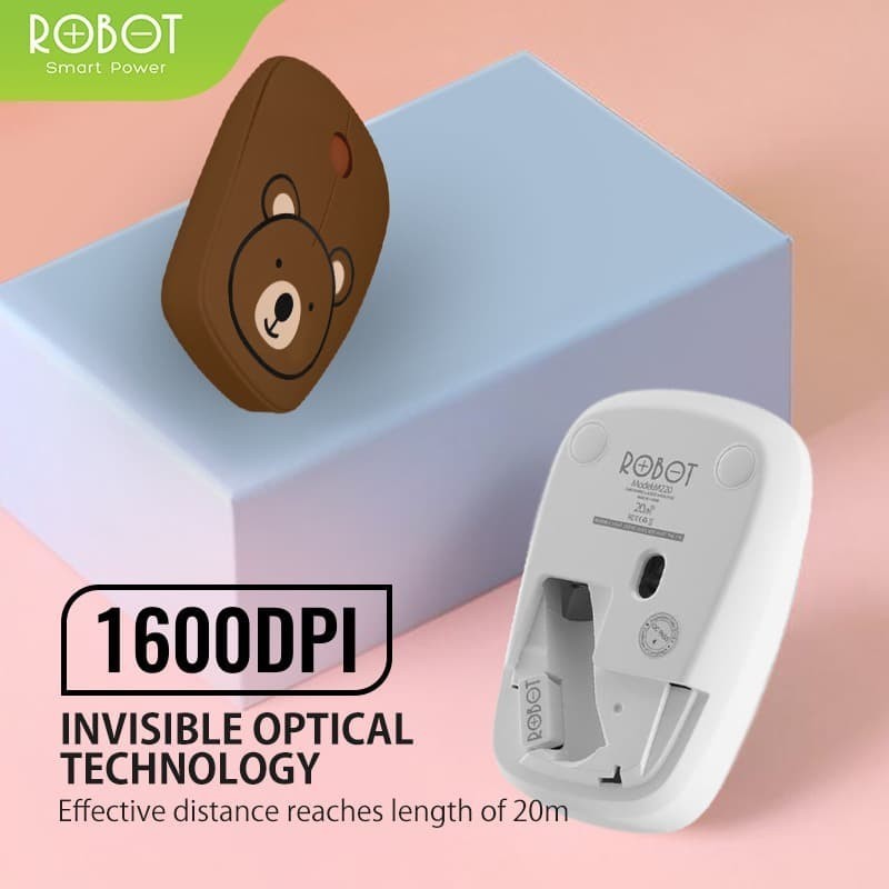 ROBOT M220 Mouse Wireless Optical Receiver USB - Biru Muda