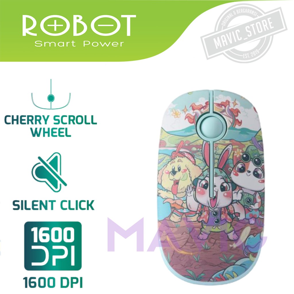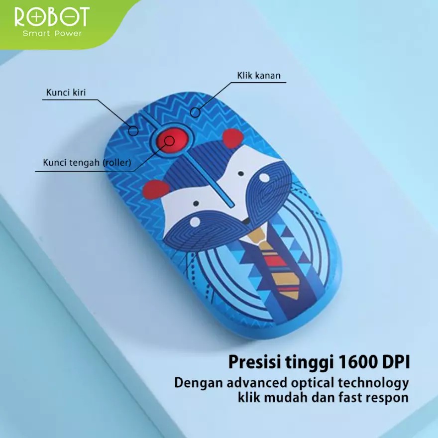 ROBOT M330 Mouse Wireless 2.4GHz Silent Click 1600DPI Koala Hedgehog Character - Garansi 1 Tahun