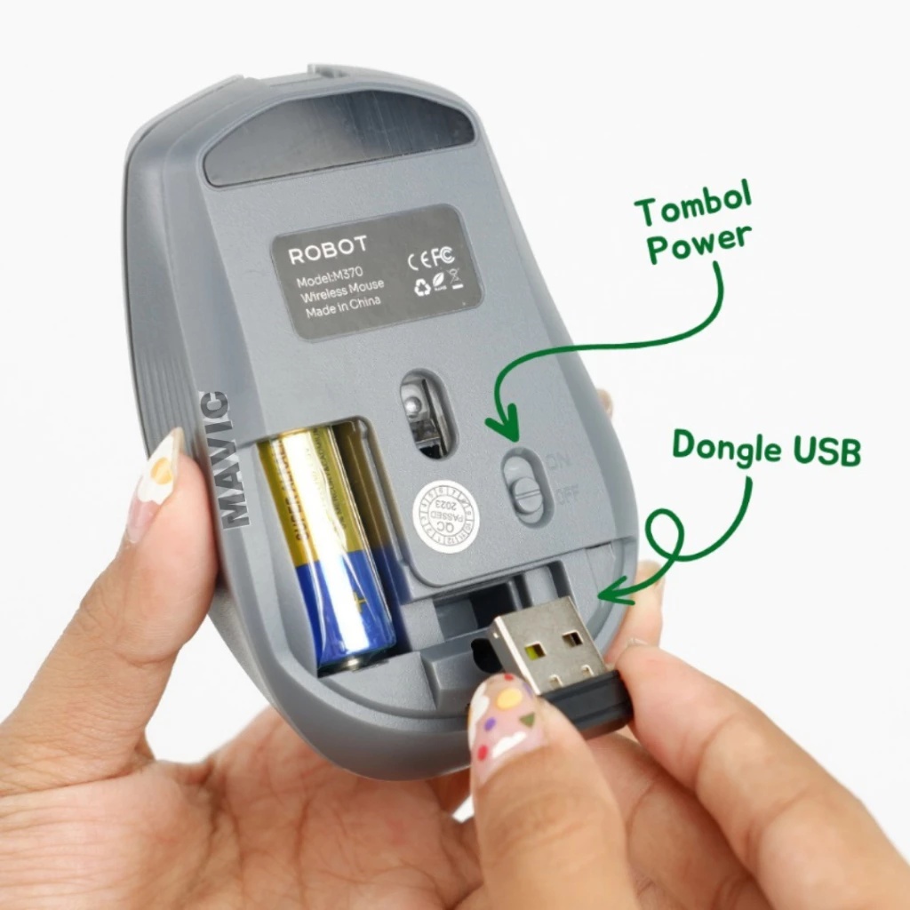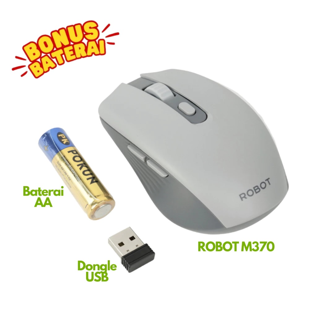 ROBOT M370 Mouse Wireless 2.4GHz Silent Klik Optical 3200 DPI Mouse 6D Receiver USB Garansi Original
