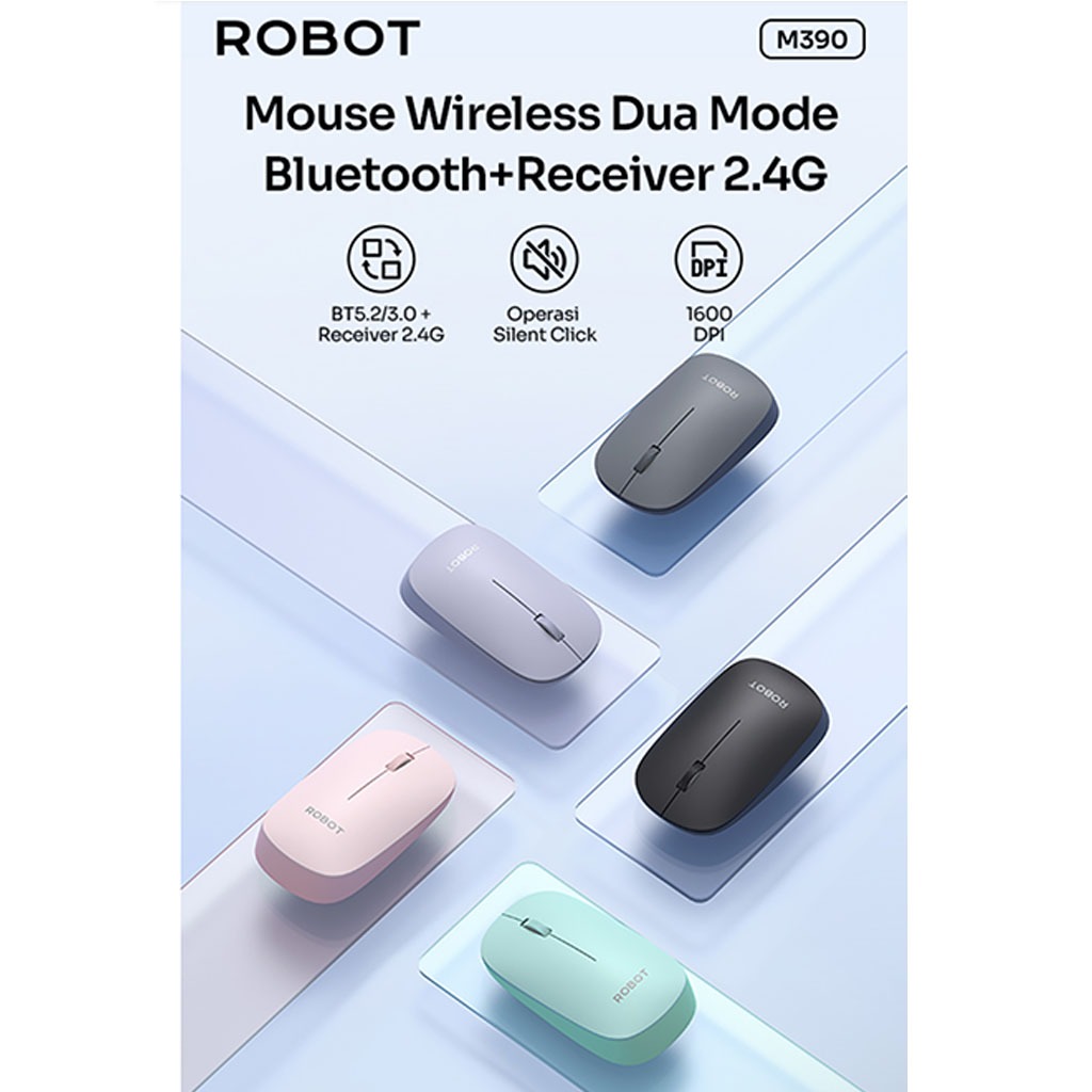 ROBOT Mouse Bluetooth M390 Wireless Mouse Silent Click - Garansi Resmi Robot 1 Tahun
