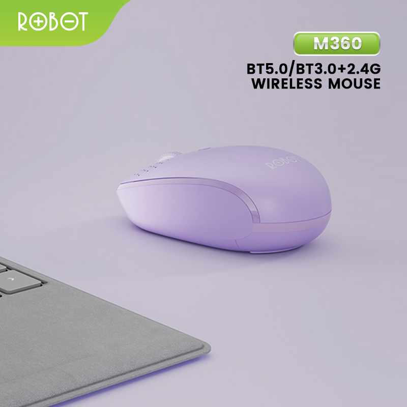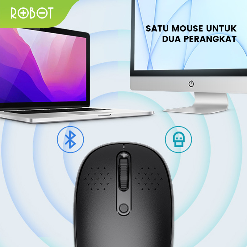 ROBOT Mouse USB 2.4G Wireless & Bluetooth 5.0 Dual Mode Connection Wireless Silent Click M360 Black 18000 DPI Original - Garansi 1 Tahun