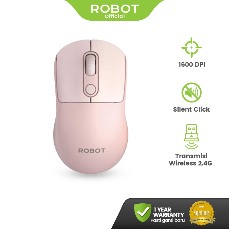 ROBOT Mouse Wireless Silent Click 2.4GHz Optical 1600DPI Split Wireless Mouse M207 Original - Garansi 1 Tahun