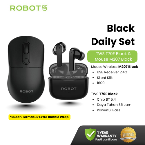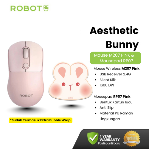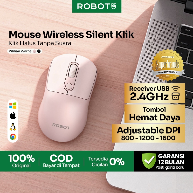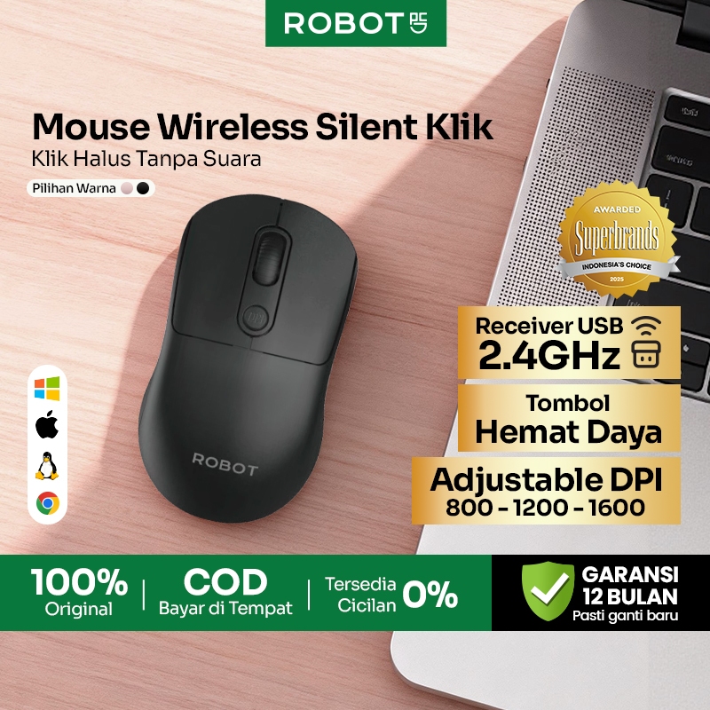 ROBOT Mouse Wireless Silent Click 2.4GHz Optical Tombol Split Multifungsi 1600 DPI Mouse Laptop PC Windows Mac Linux ChromeOS Chip Hemat Energi Original - M207