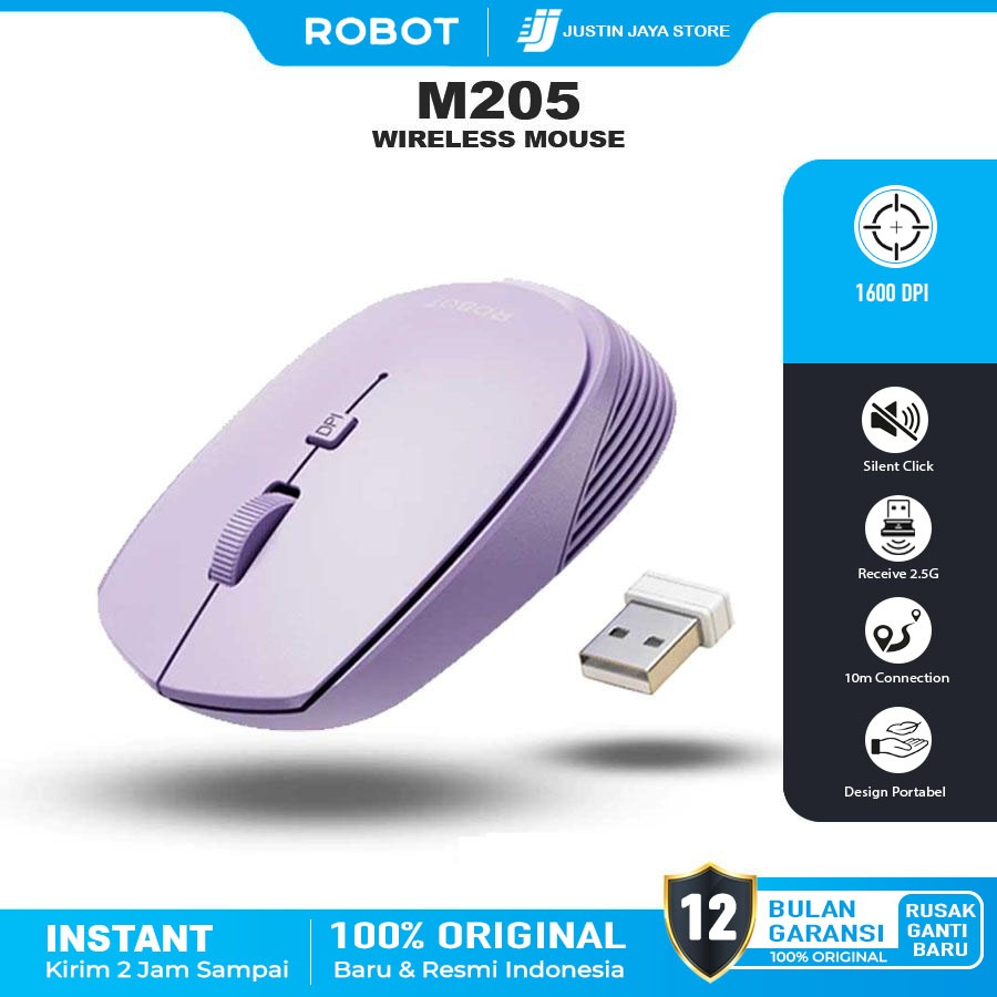 ROBOT Mouse Wireless Tanpa Kabel Robot M205 Optical Mouse 1600 DPI Garansi Resmi Robot 1 Tahun