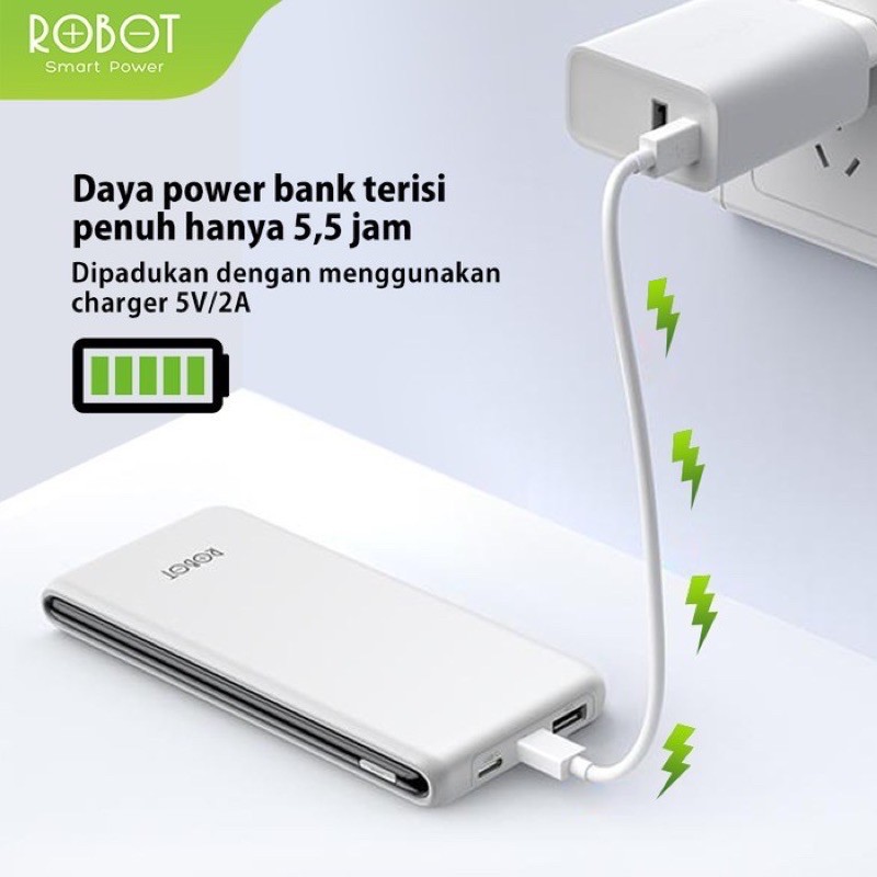 ROBOT Power Bank RT180 / RT12 10000mAh Powerbank Dual Input Port Type C & Micro USB Garansi Original Resmi