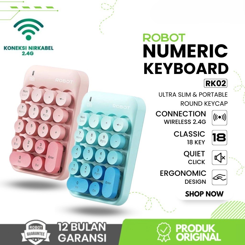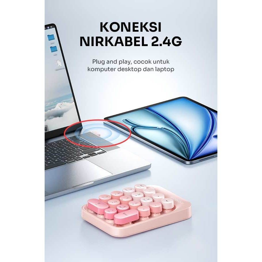 ROBOT RK02 Keyboard Numeric Wireless RK-02 Tanpa Kabel Koneksi 2.4G Keyboard Angka Kecil Mini Portable Warna Pastel 18 Key Tombol Bulat Keypad