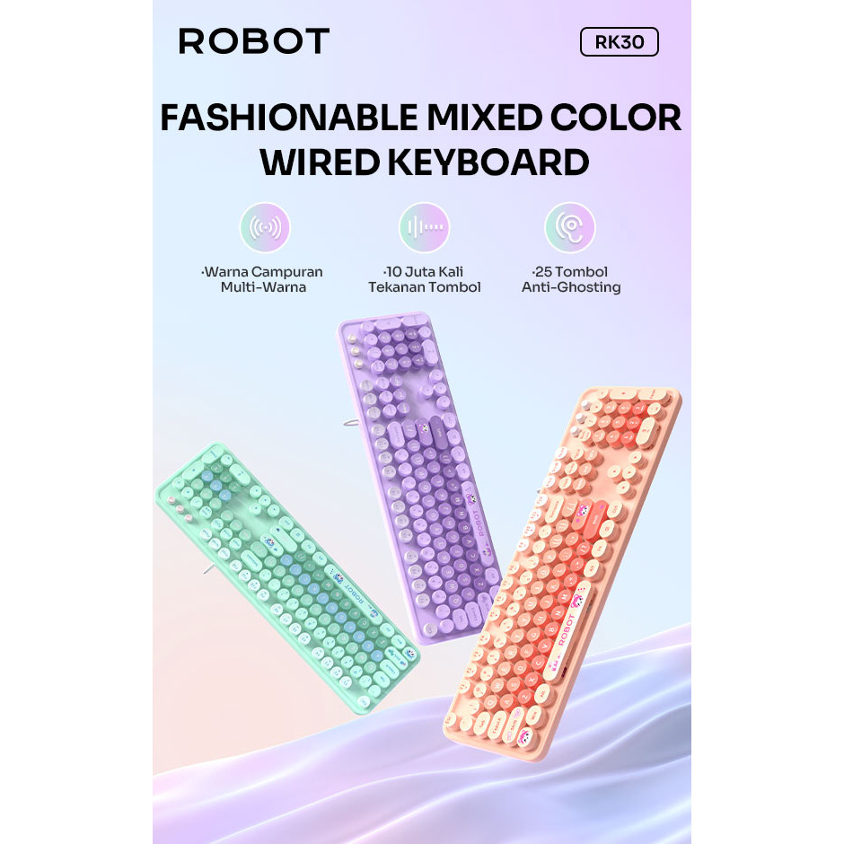 ROBOT RK30 Keyboard Kabel Fashionable Mixed Colorful Lucu Imut 25 Tombol