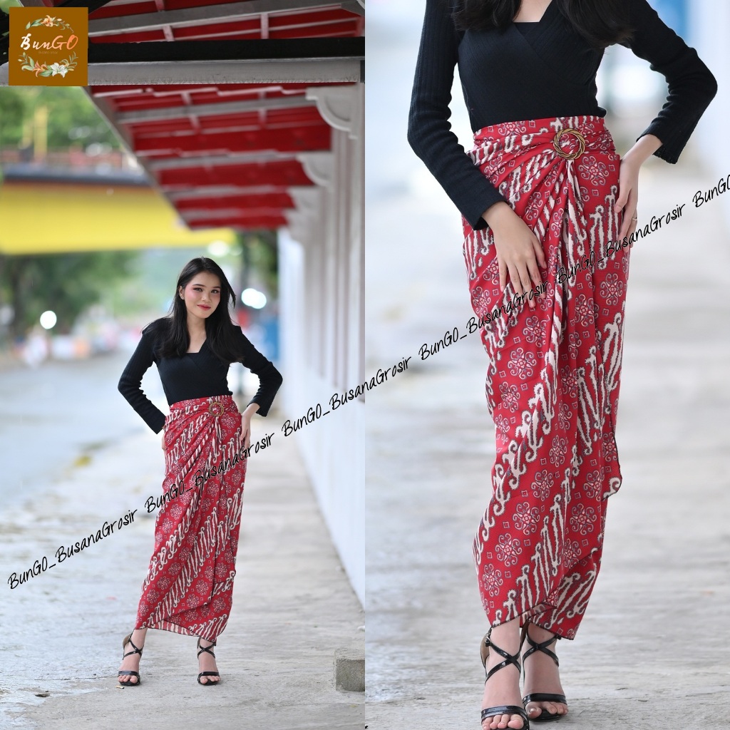 ROK BATIK LILIT MERAH BAWAHAN KEBAYA FREE RING MOTIF LERENG MERAH