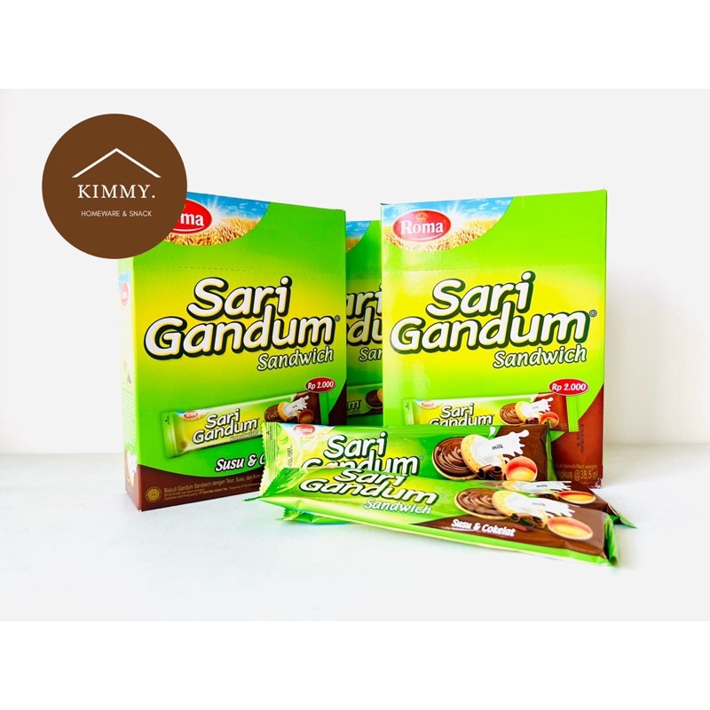 ROMA SARI GANDUM 1 BOX ISI 12 PCS / SARI GANDUM SANDWICH COKELAT 39 GRAM / BISKUIT GANDUM COKELAT & SUSU