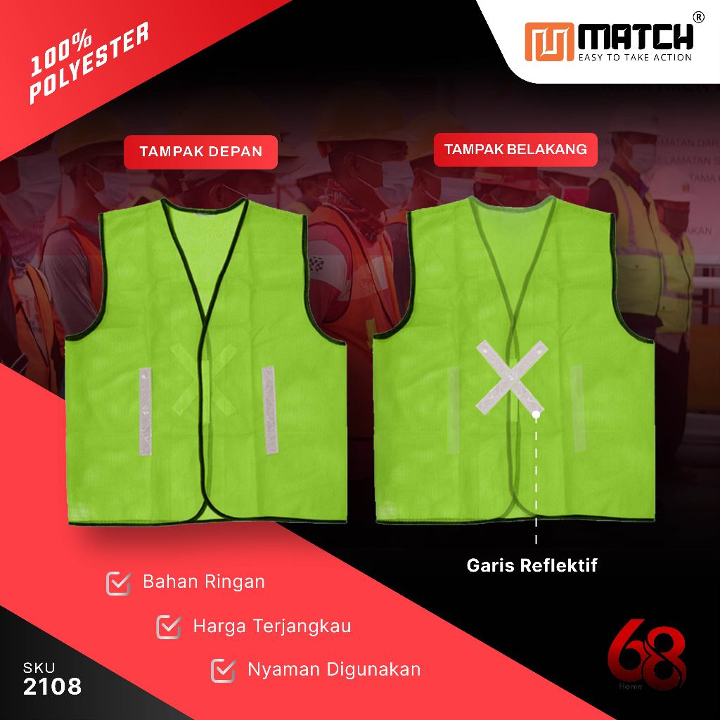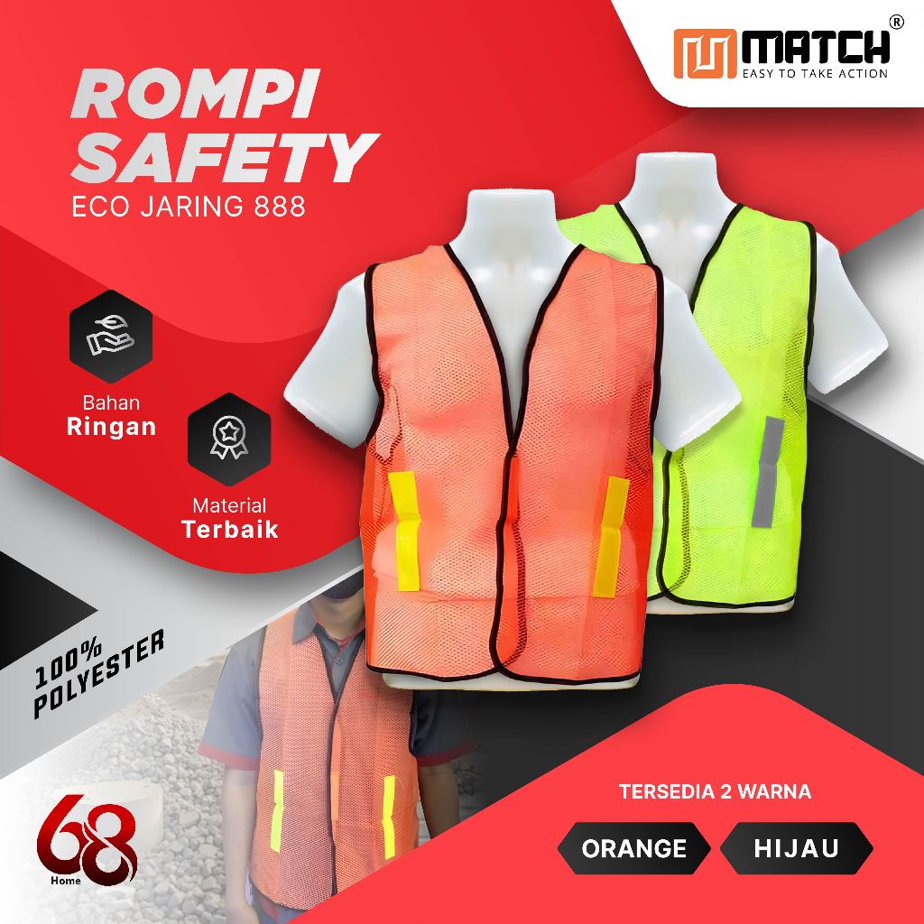 Rompi Safety Proyek K3 MATCH – Jaring Kuat, Nyaman, Banyak Warna 2108 2109
