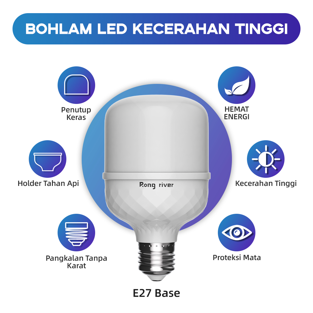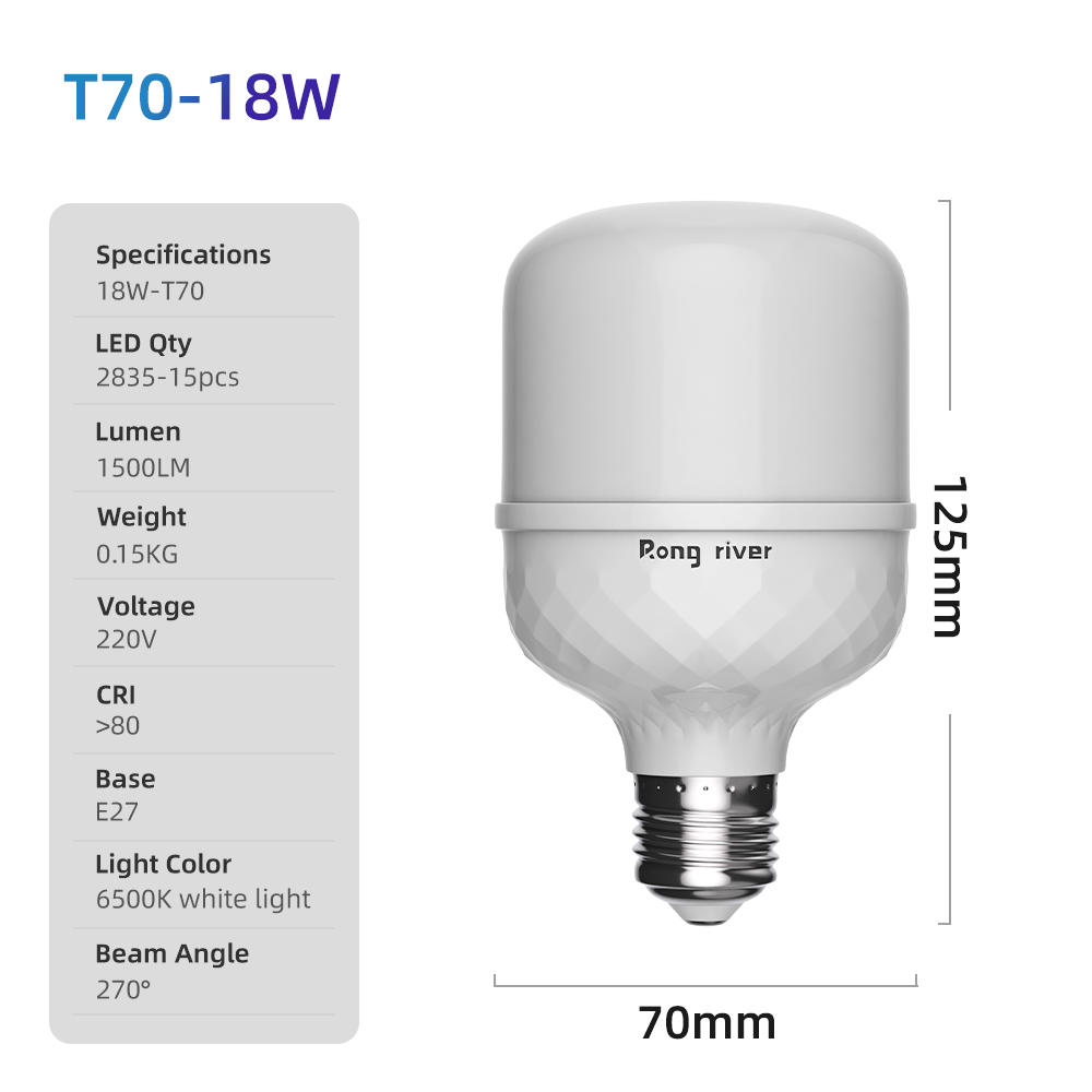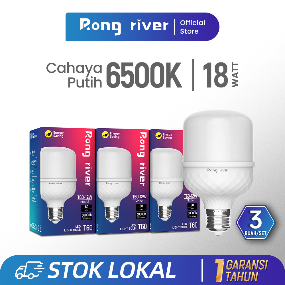 RONG RIVER 3Buah 18Watt Lampu LED Bohlam Cahaya Putih 6500K Bohlam LED