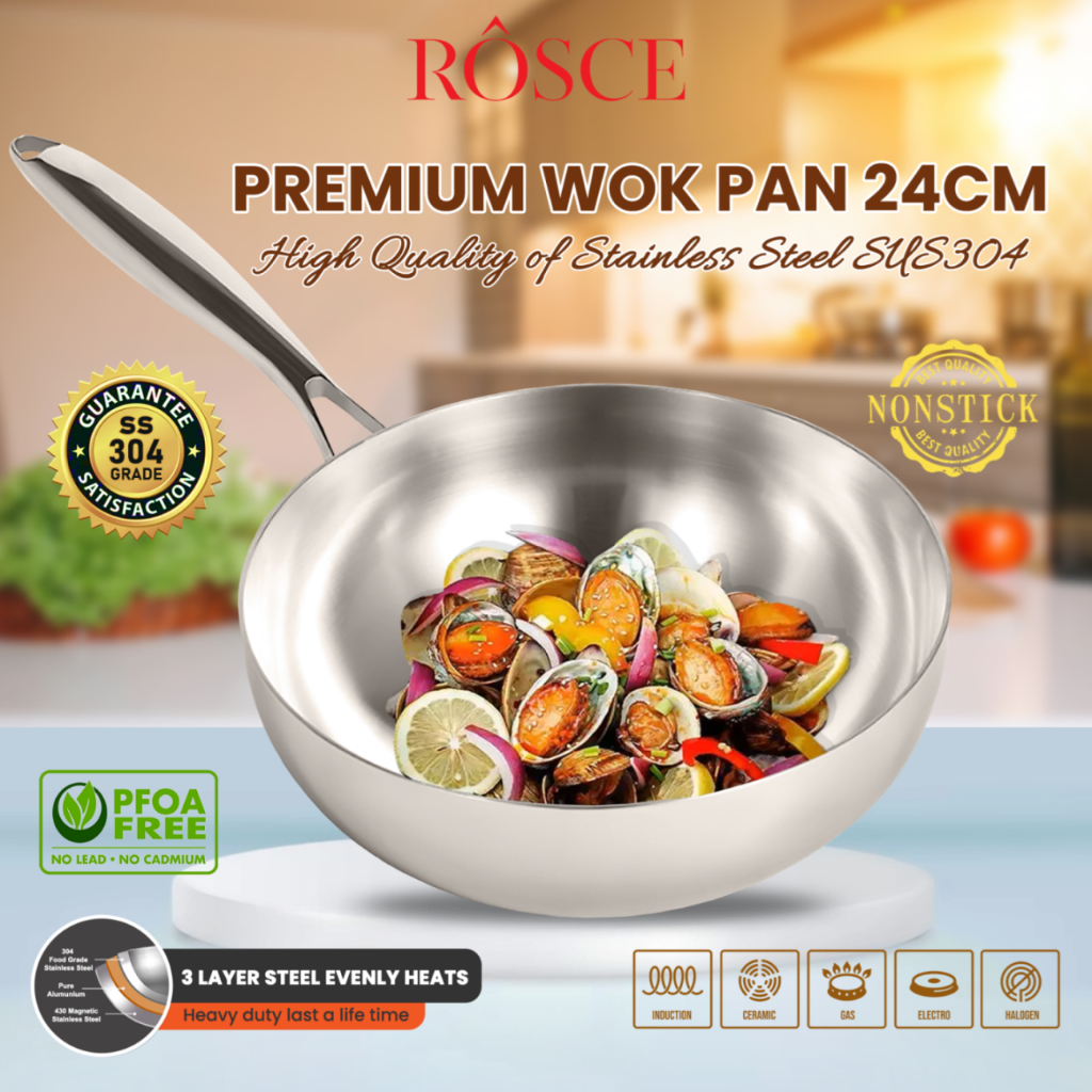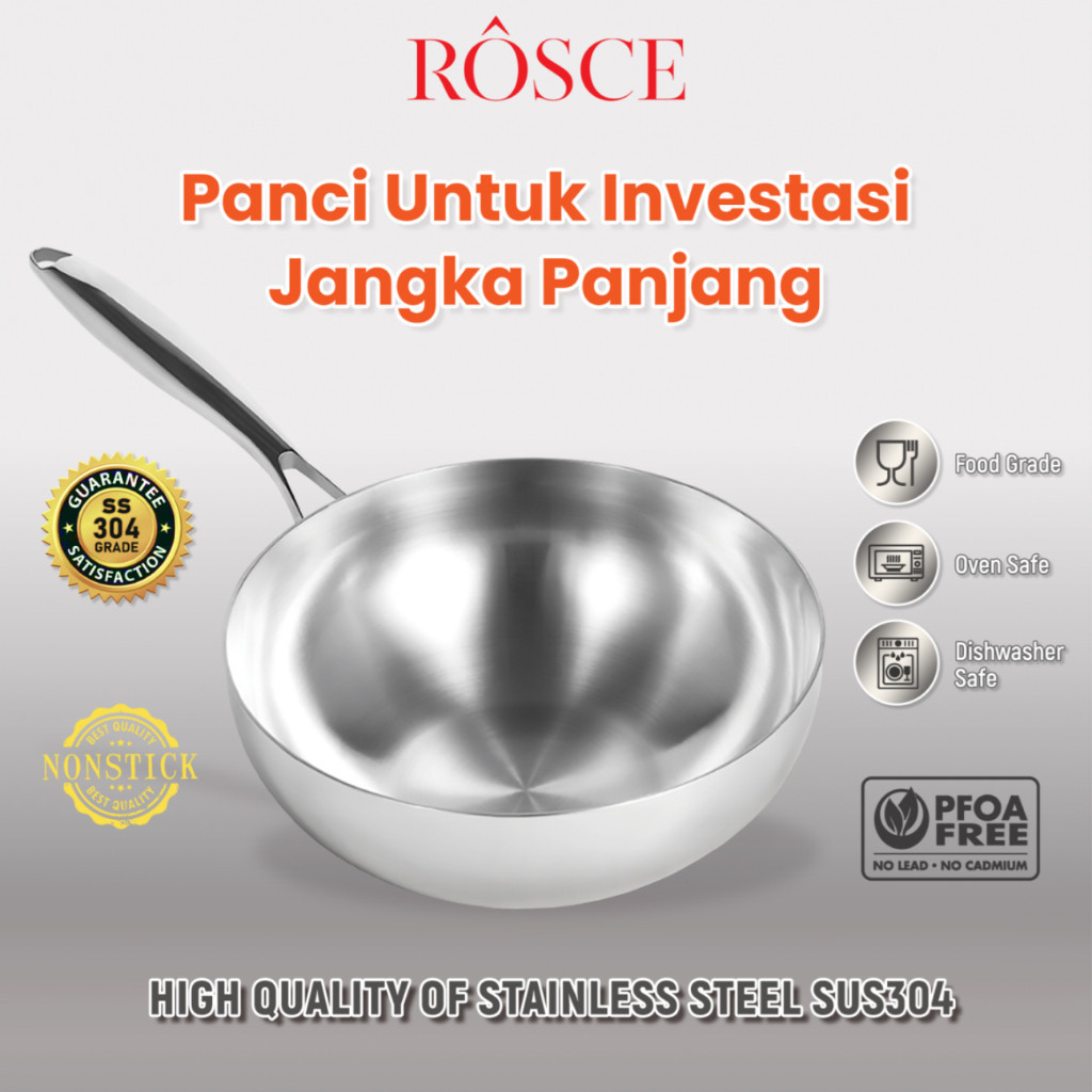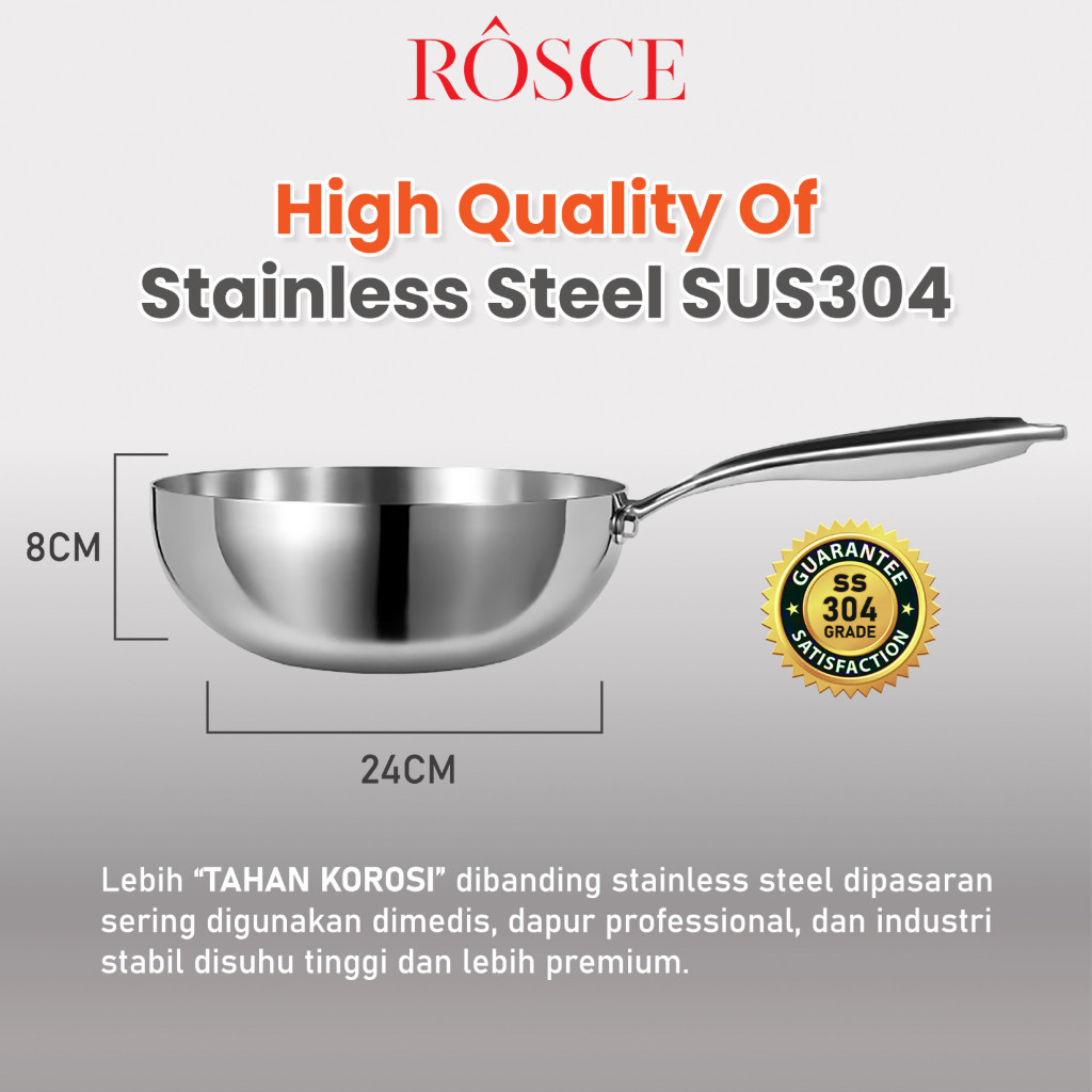 ROSCE Wajan Wok Pan 24cm – Stainless Steel SUS304 Food Grade