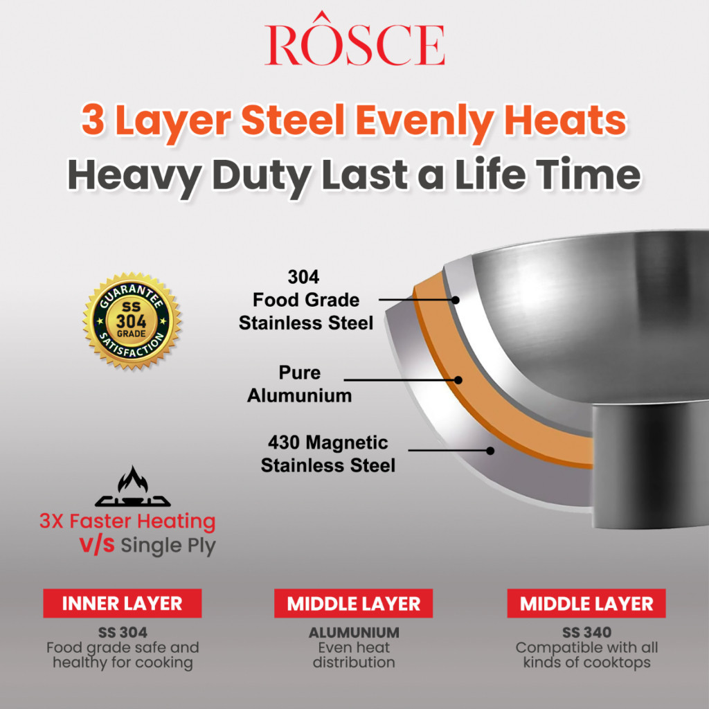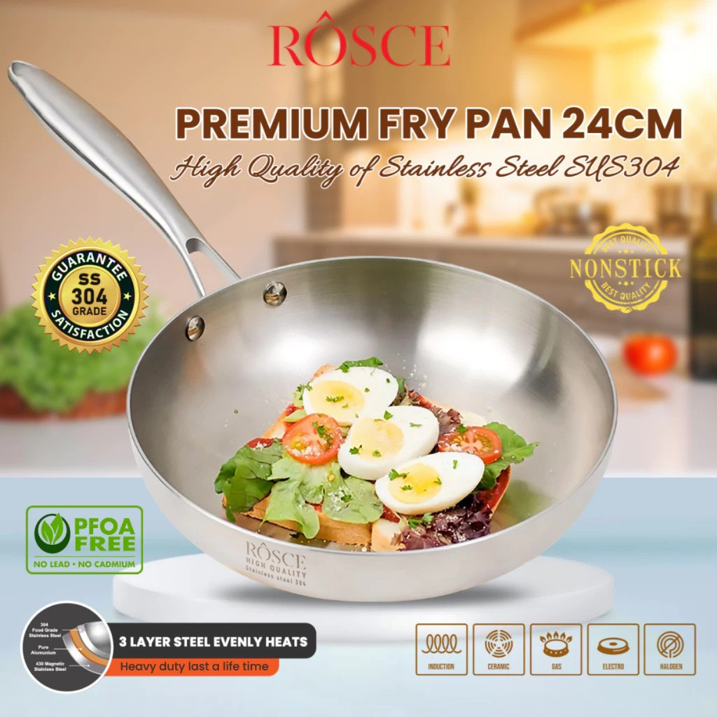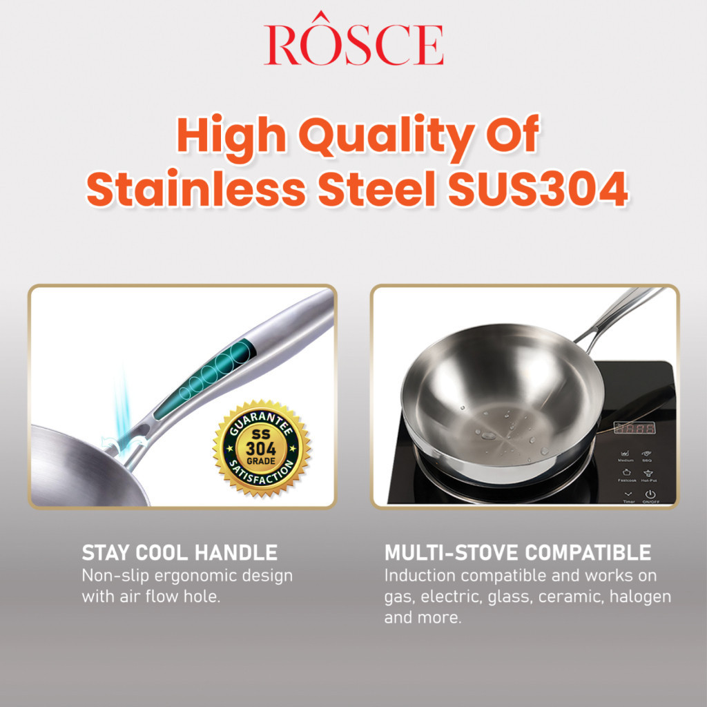 ROSCE Wajan Wok Pan 24cm – Stainless Steel SUS304 Food Grade