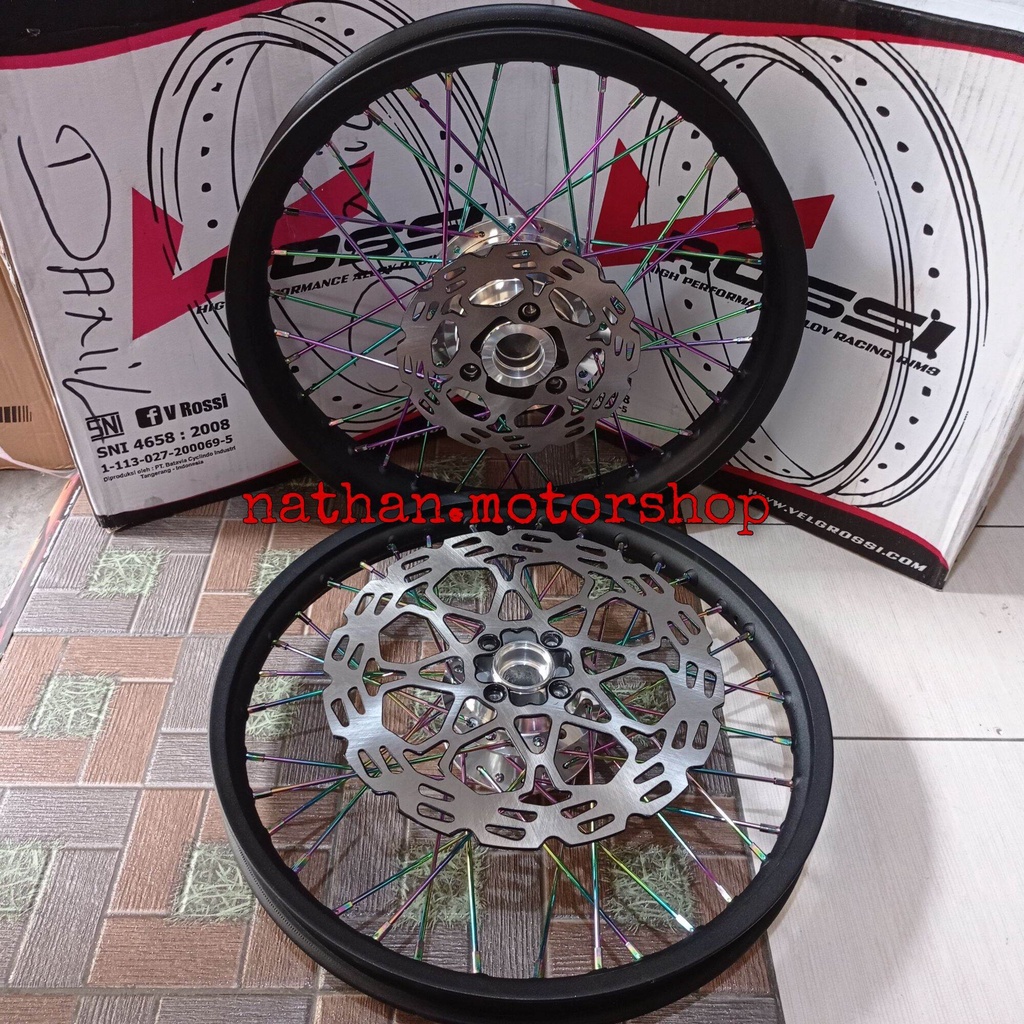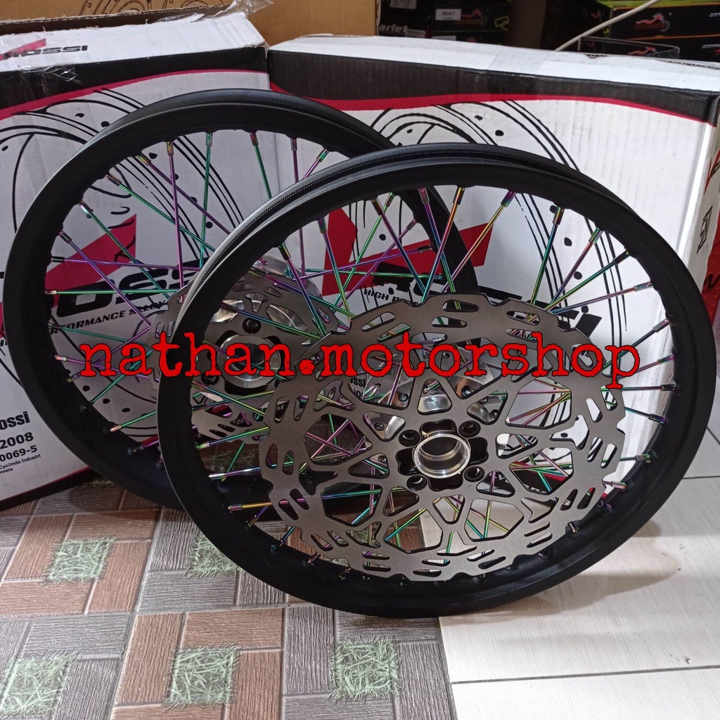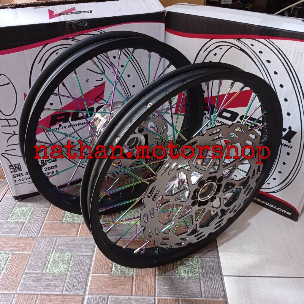 ROSSI - Velg Satria FU Paketan Plus Piringan Depan Belakang Hitam/Rainbow - Velg Satria FU karbu/Injeksi Sepasang depan belakang - Velg Rossi Kualitas Original SNI