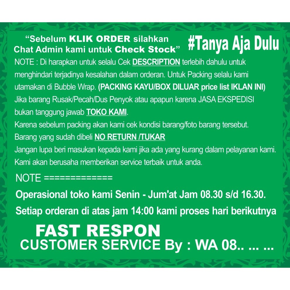 Bebas Pengembalian • Proteksi Kerusakan +