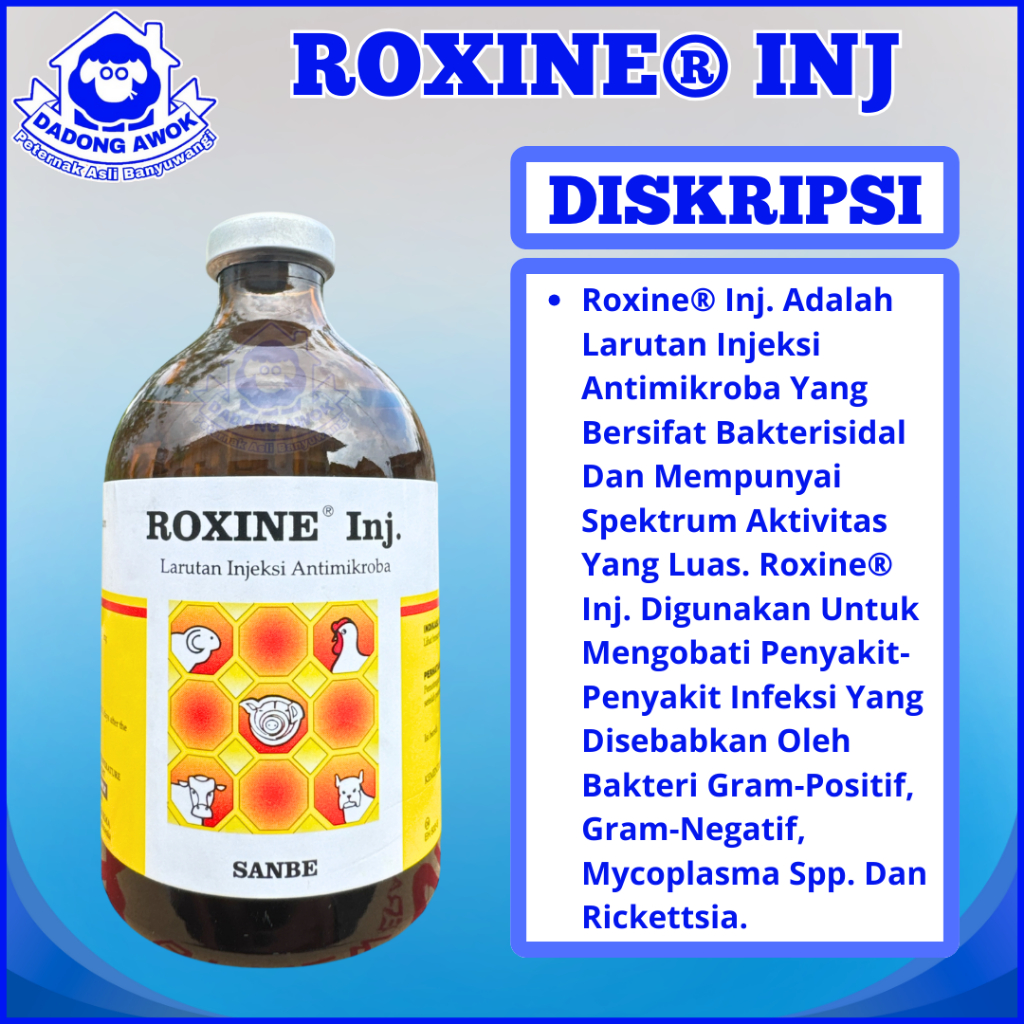 ROXINE INJEKSI 100ml - obat batuk pikek ngorok Antibiotik infeksi Pernafasan Sapi kambing Domba ayam