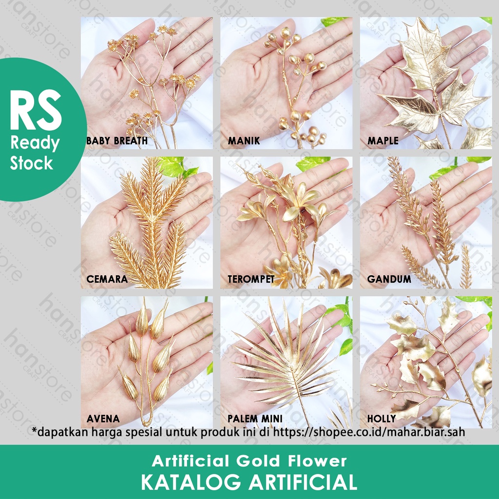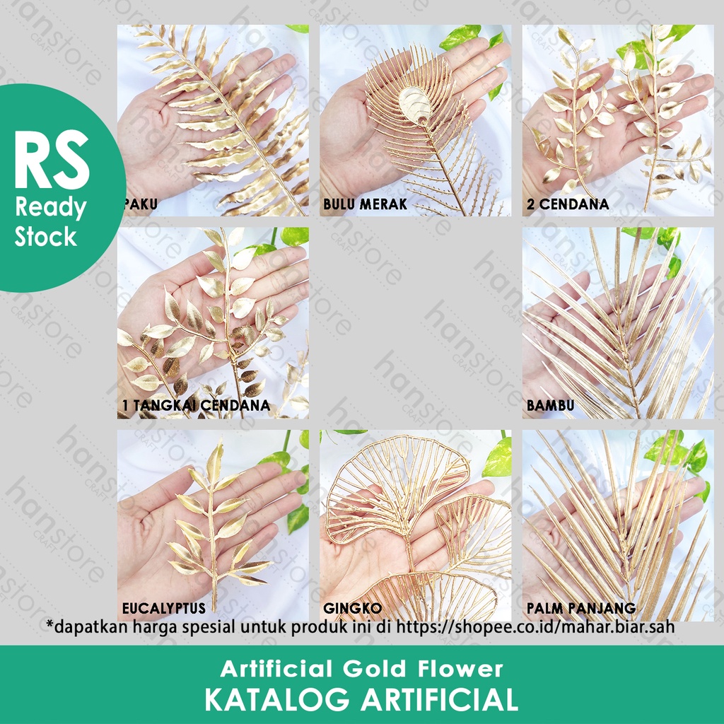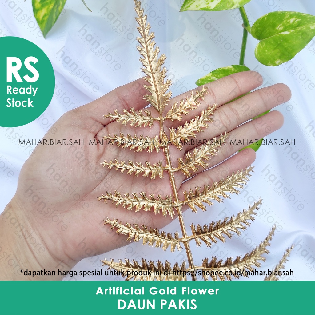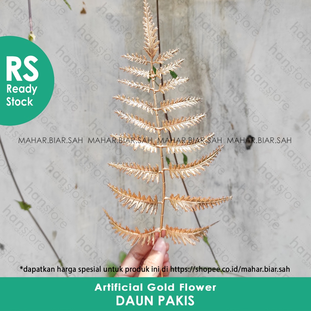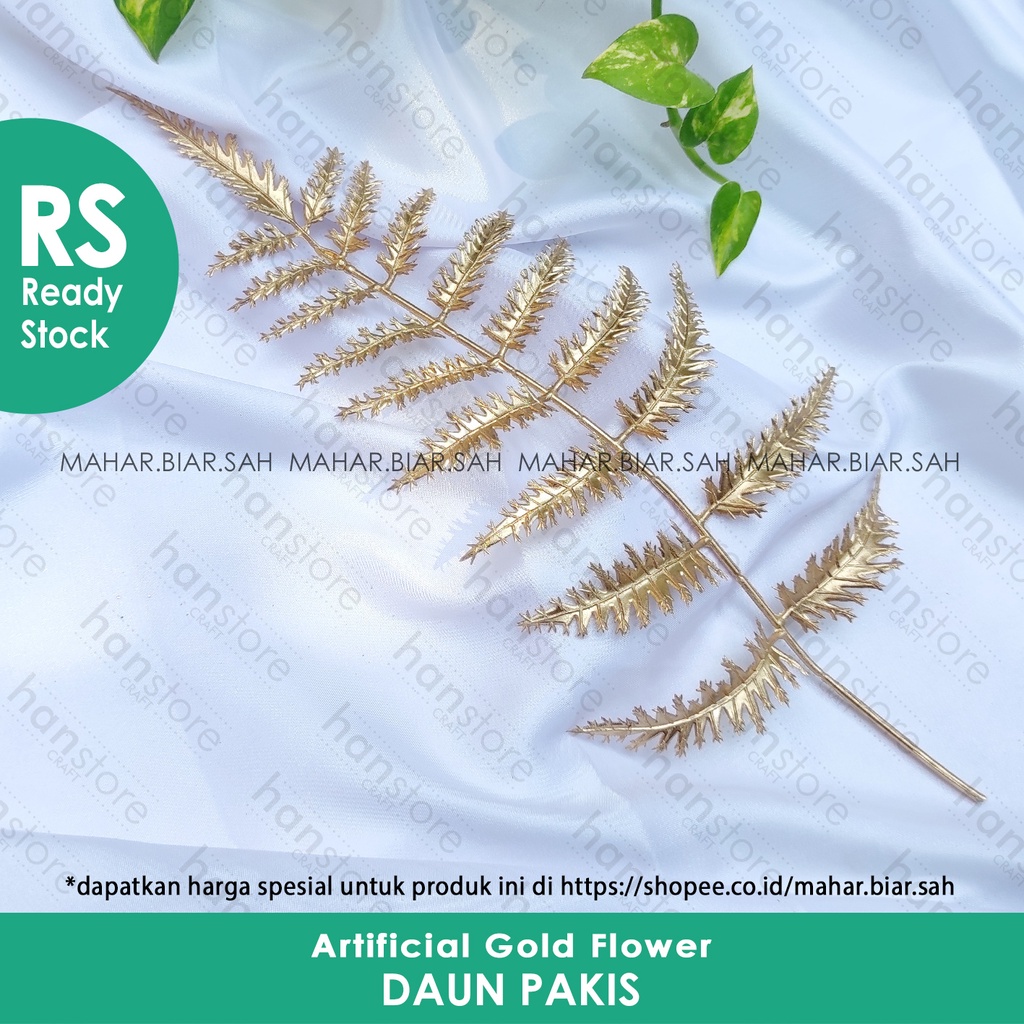 RS Daun Pakis Artificial Gold / Bunga Palsu / Daun Emas Palsu / Plastik / Hias / Dekorasi / Seserahan / Mahar