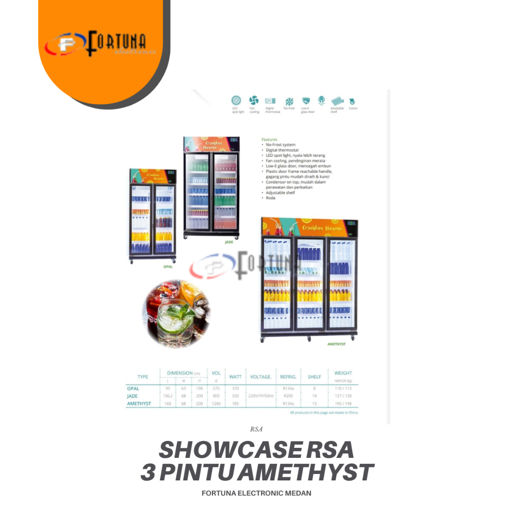 RSA SHOWCASE 3 PINTU AMETHYST DISPLAY CHILLER COOLER 1280 15 RAK LITER MEDAN