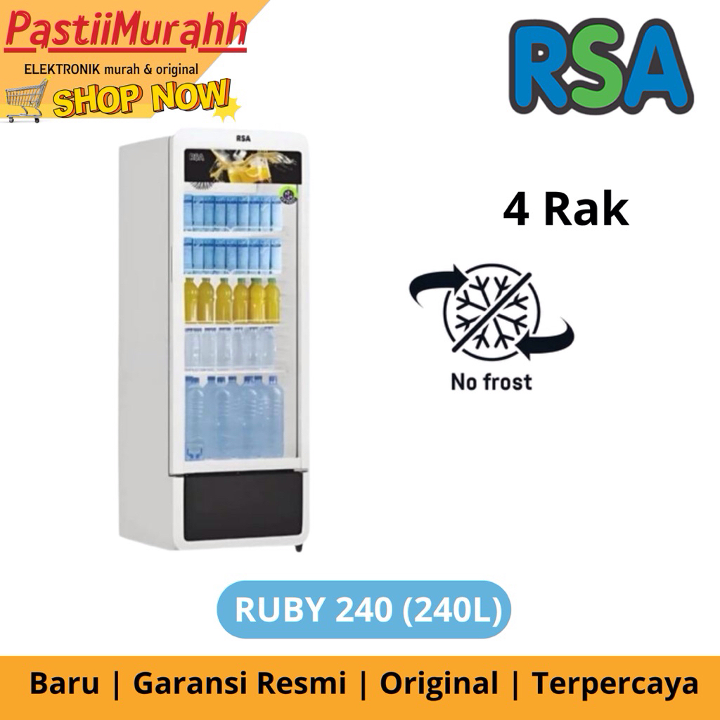 RSA SHOWCASE RUBY-280 (280L) RUBY-240 (240L) RUBY-200(200L) NO FROST PENDINGIN MINUMAN RSA 3 RAK/4 RAK/5 RAK