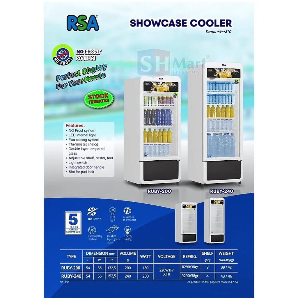 RSA Showcase 1 Pintu 3 Rak No Frost System 200 Liter RUBY 200 / RUBY200 / RUBY-200 (MEDAN)