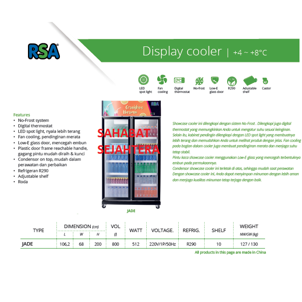 RSA Showcase Cooler JADE Kulkas Showcase 2 Pintu