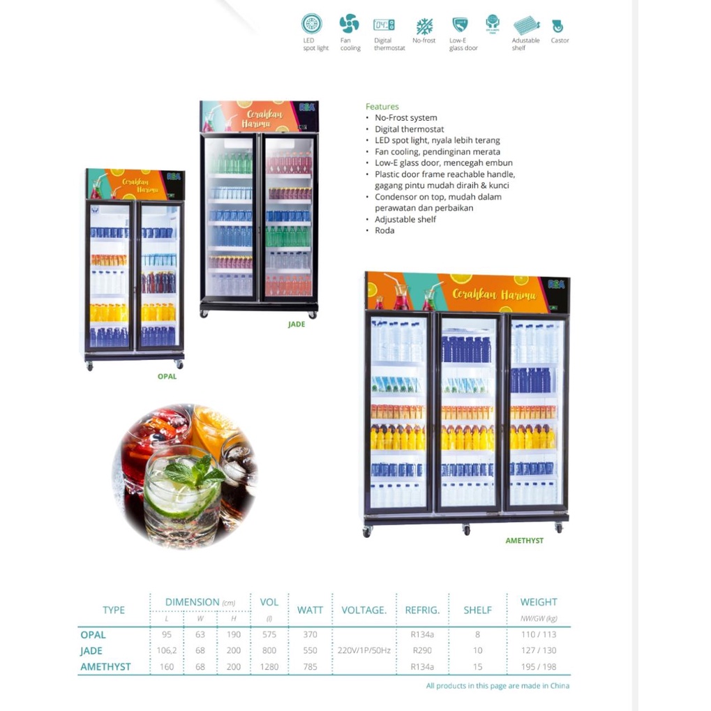 RSA Showcase / Display Cooler 2 Pintu JADE Kulkas 2 Pintu Kapasitas 800L