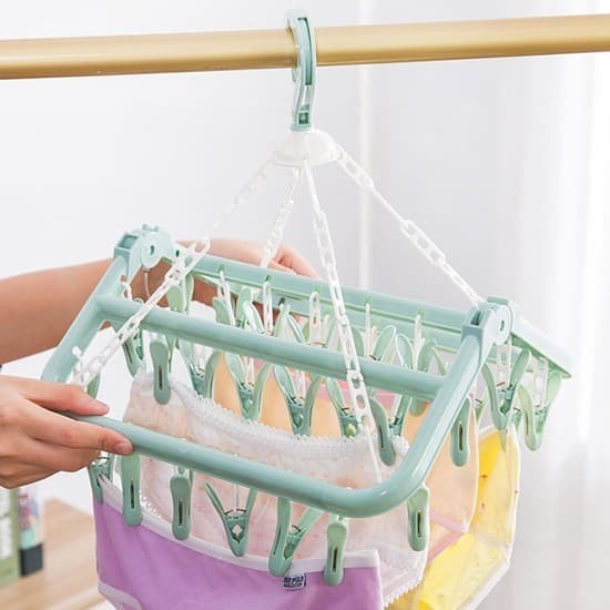 RST | Gantungan Baju 32 Jepit Jemuran Jepit Baju Kaos Kaki Celana Dalam Bra Pakaian Bayi Serbaguna Hanger Lipat Jemuran Baju 32 Penjepit Jepitan