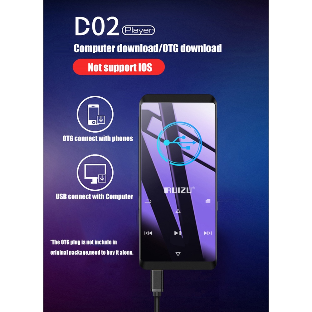 RUIZU D02 16GB - MP3 Player Bluetooth HiFi Digital Audio Player Touchbutton - MP4 Player DAP