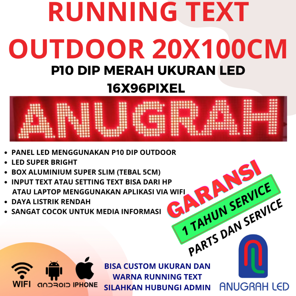 RUNNING TEXT RUNING TEXT LED P10 DIP SMD OUTDOOR MERAH